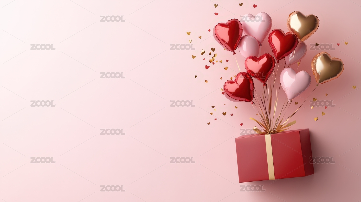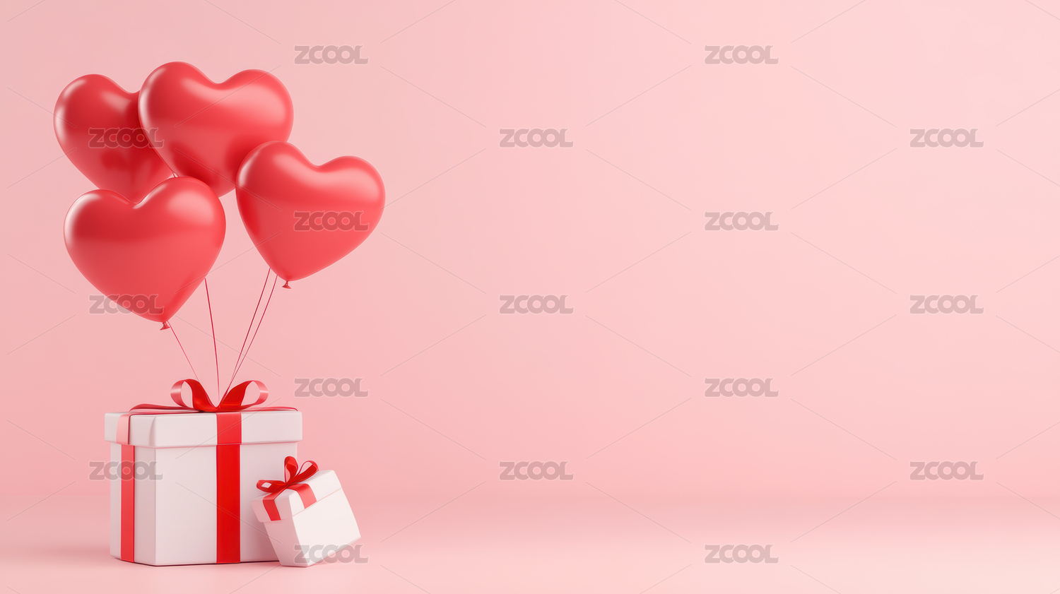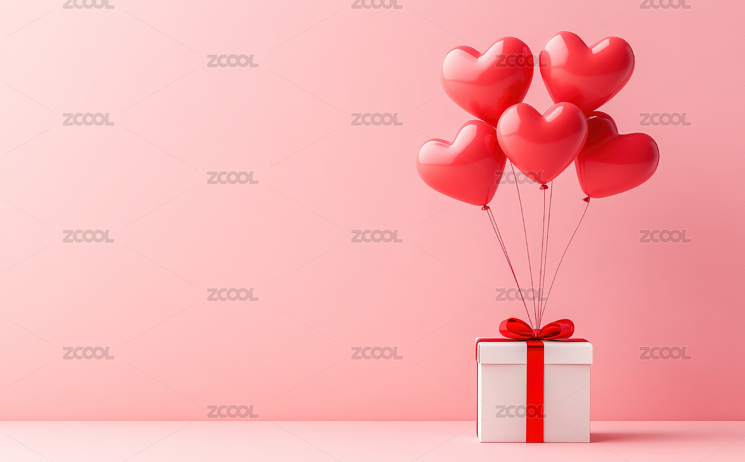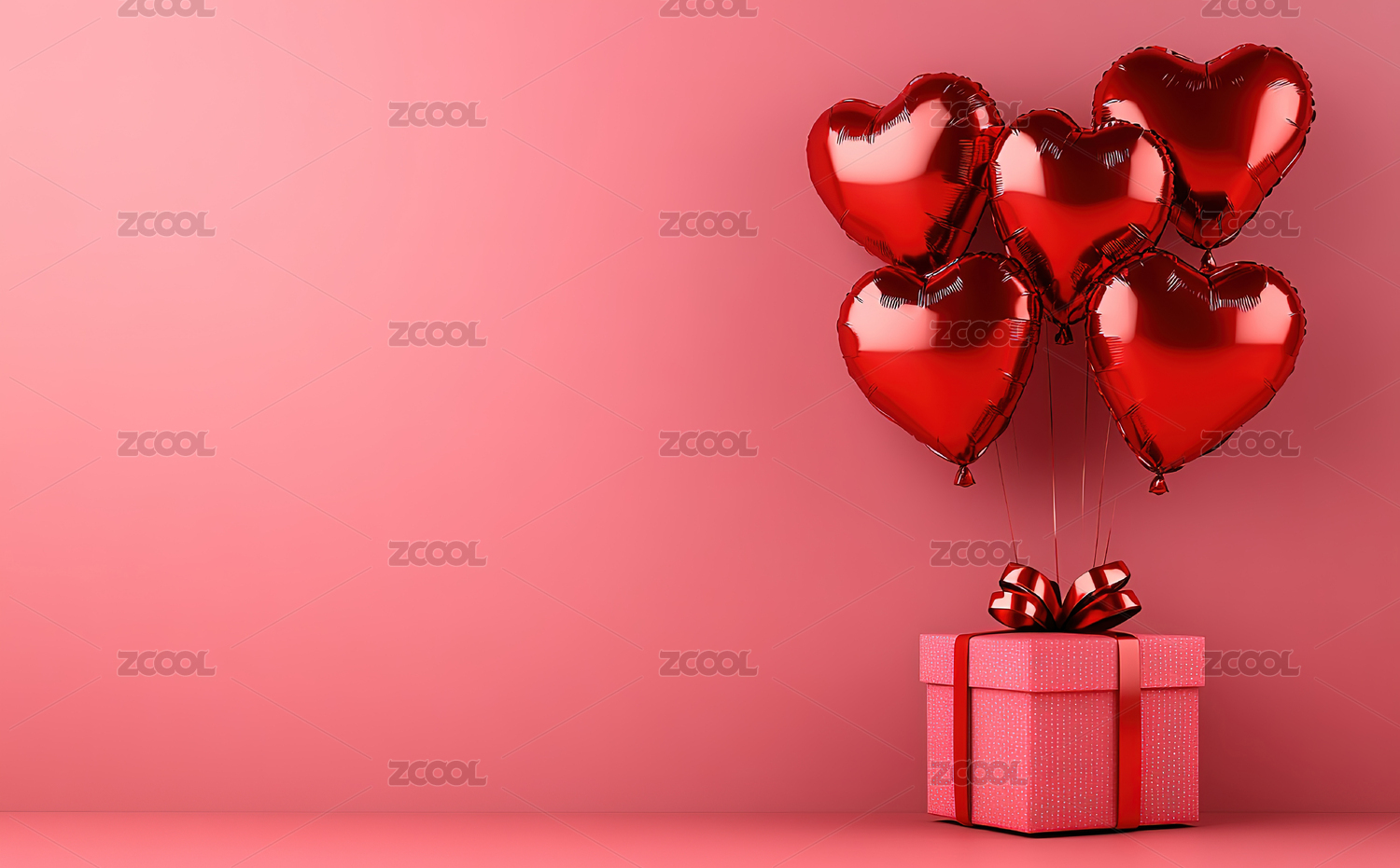 圣诞节爱心形状气球挂着粉色礼盒插画