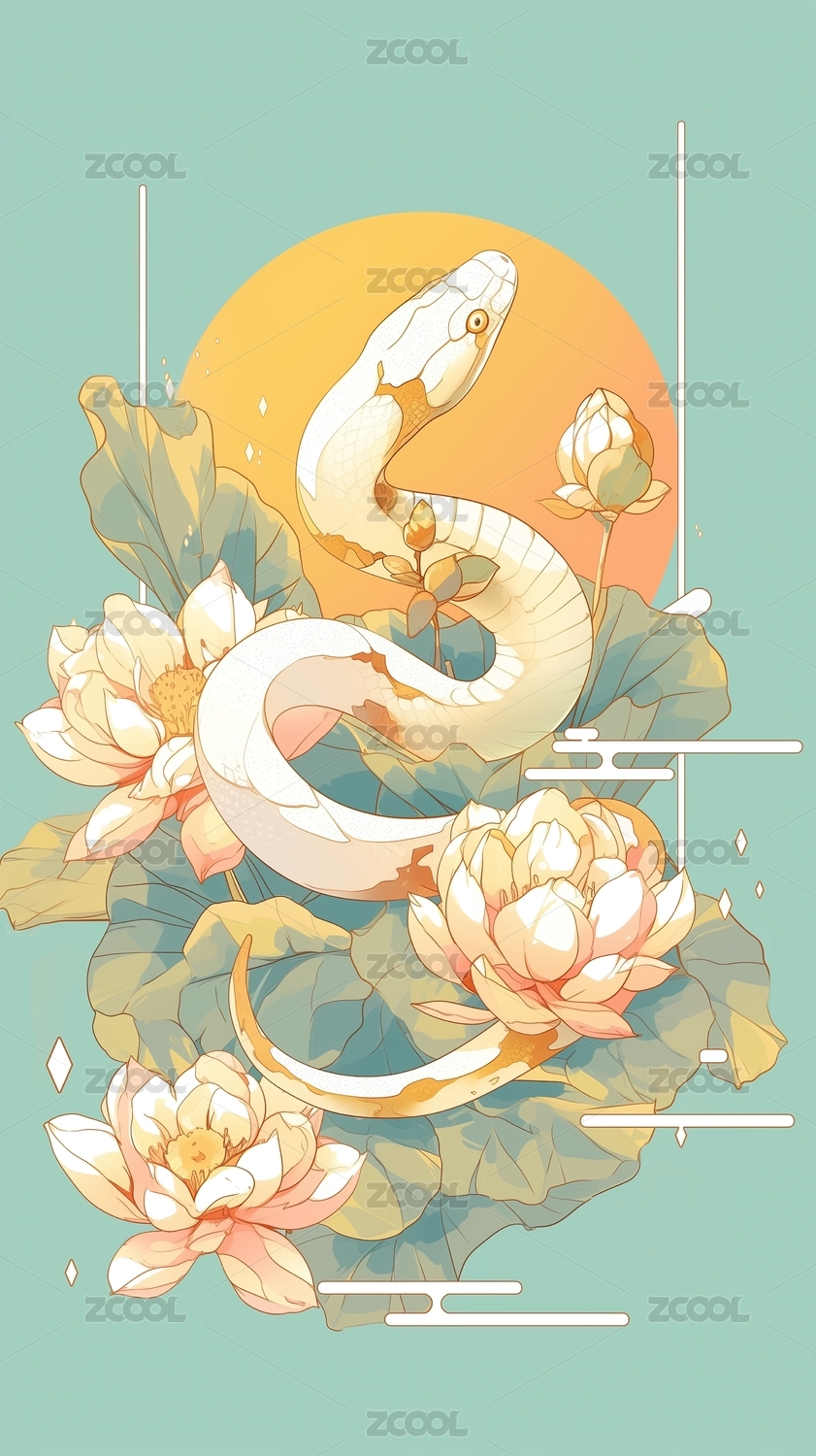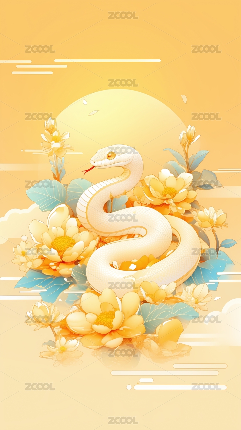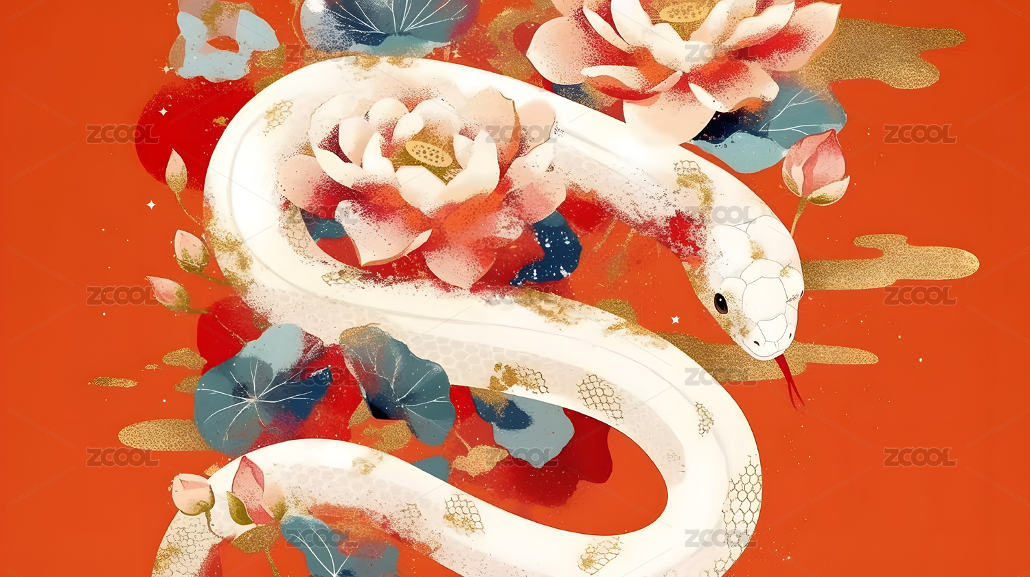 中国风,蛇,蛇年,生肖蛇,花,卡通,插画