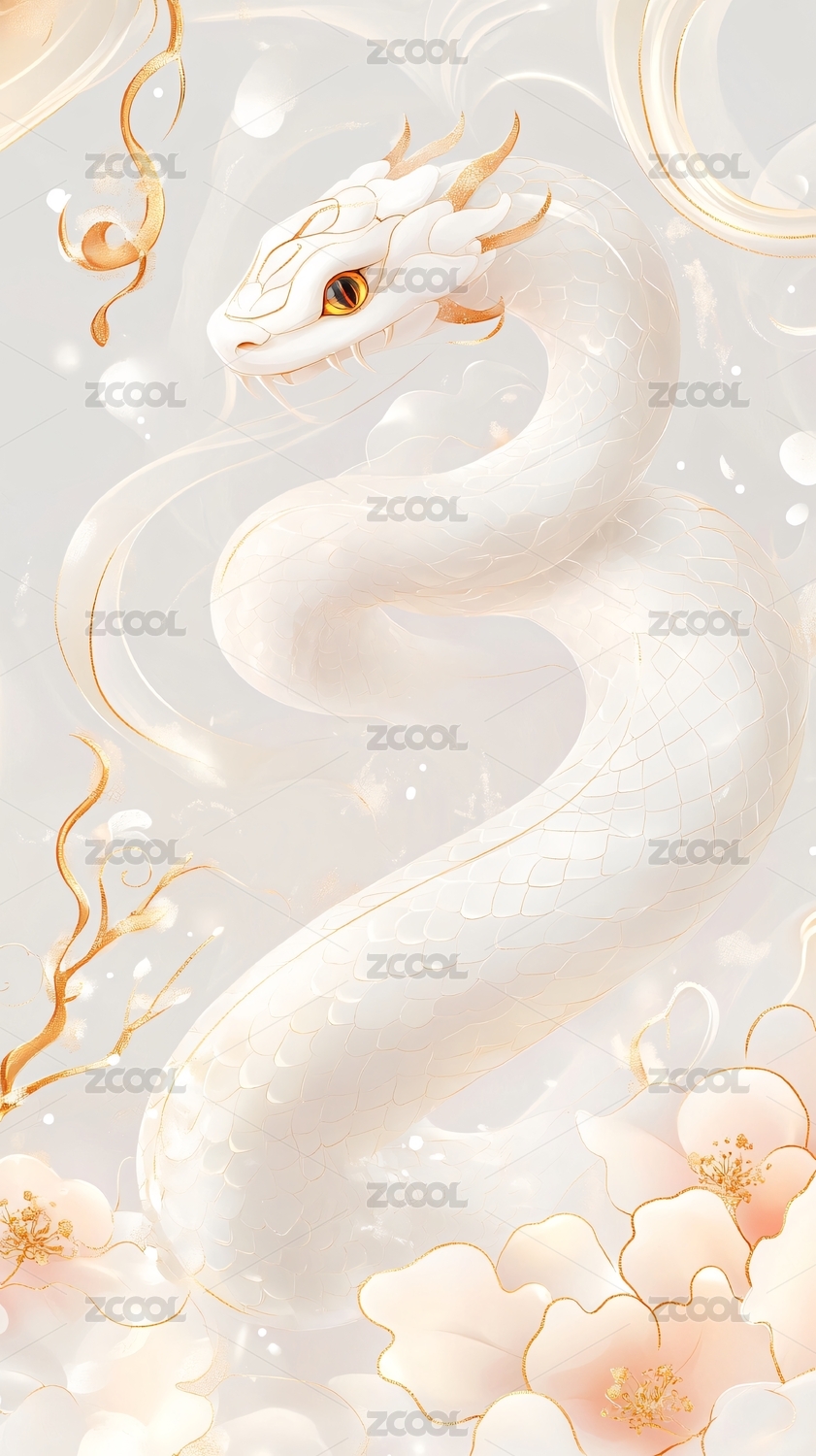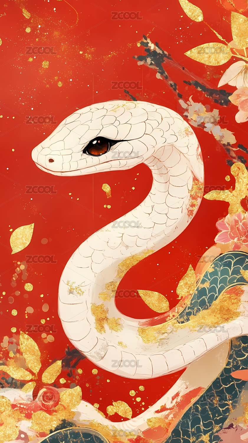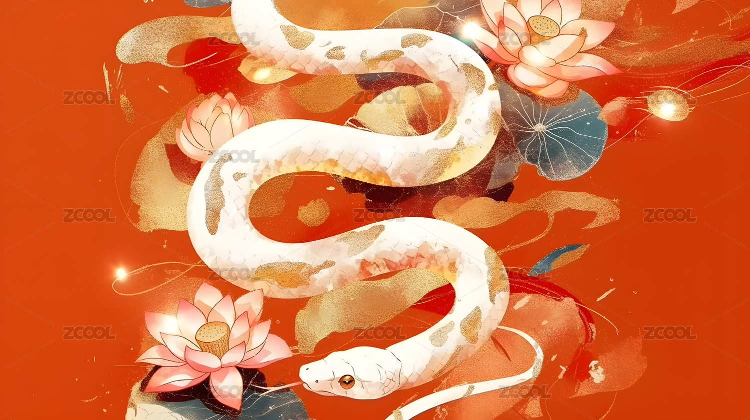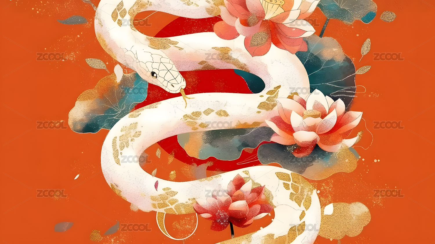 中国风,蛇,蛇年,生肖蛇,花,卡通,插画
