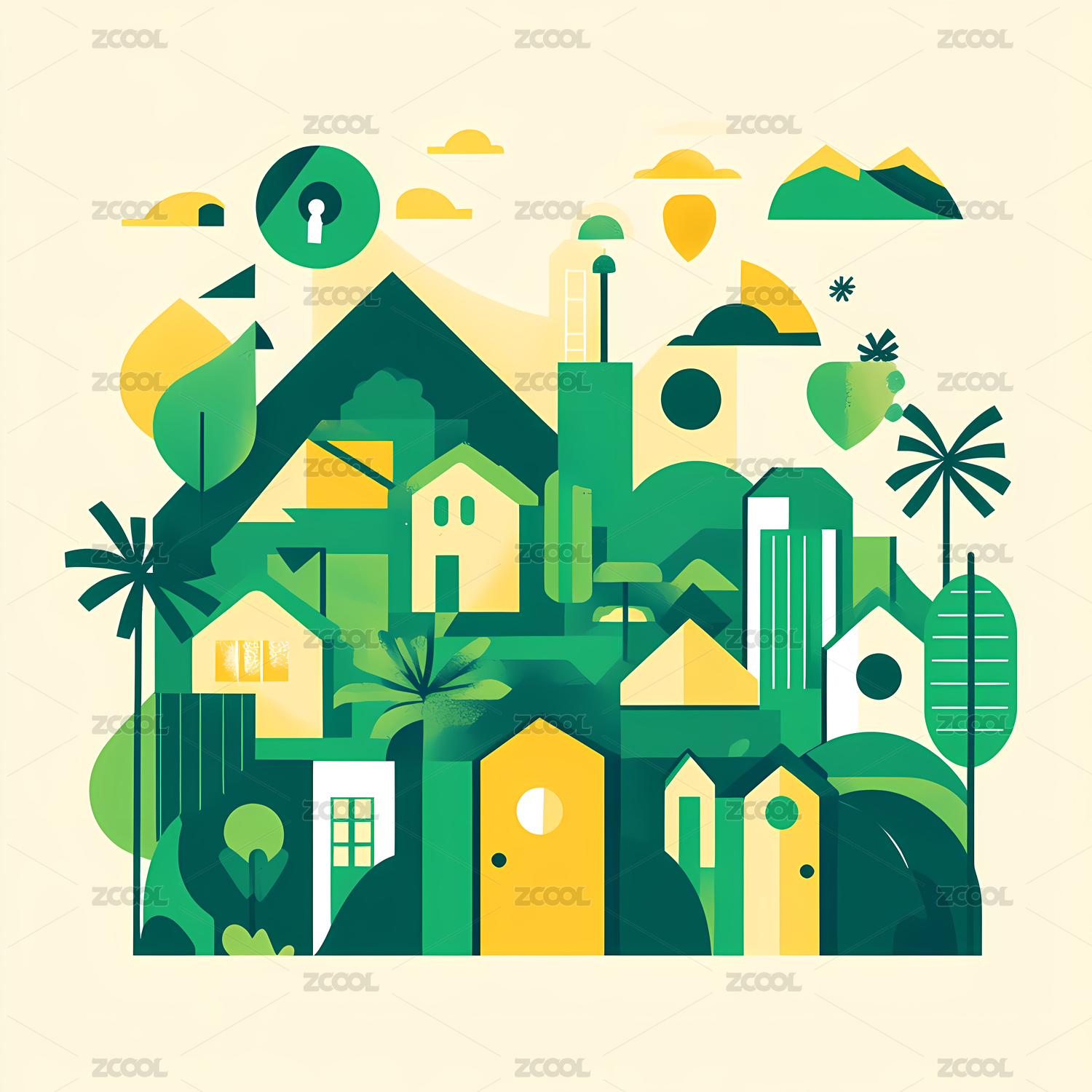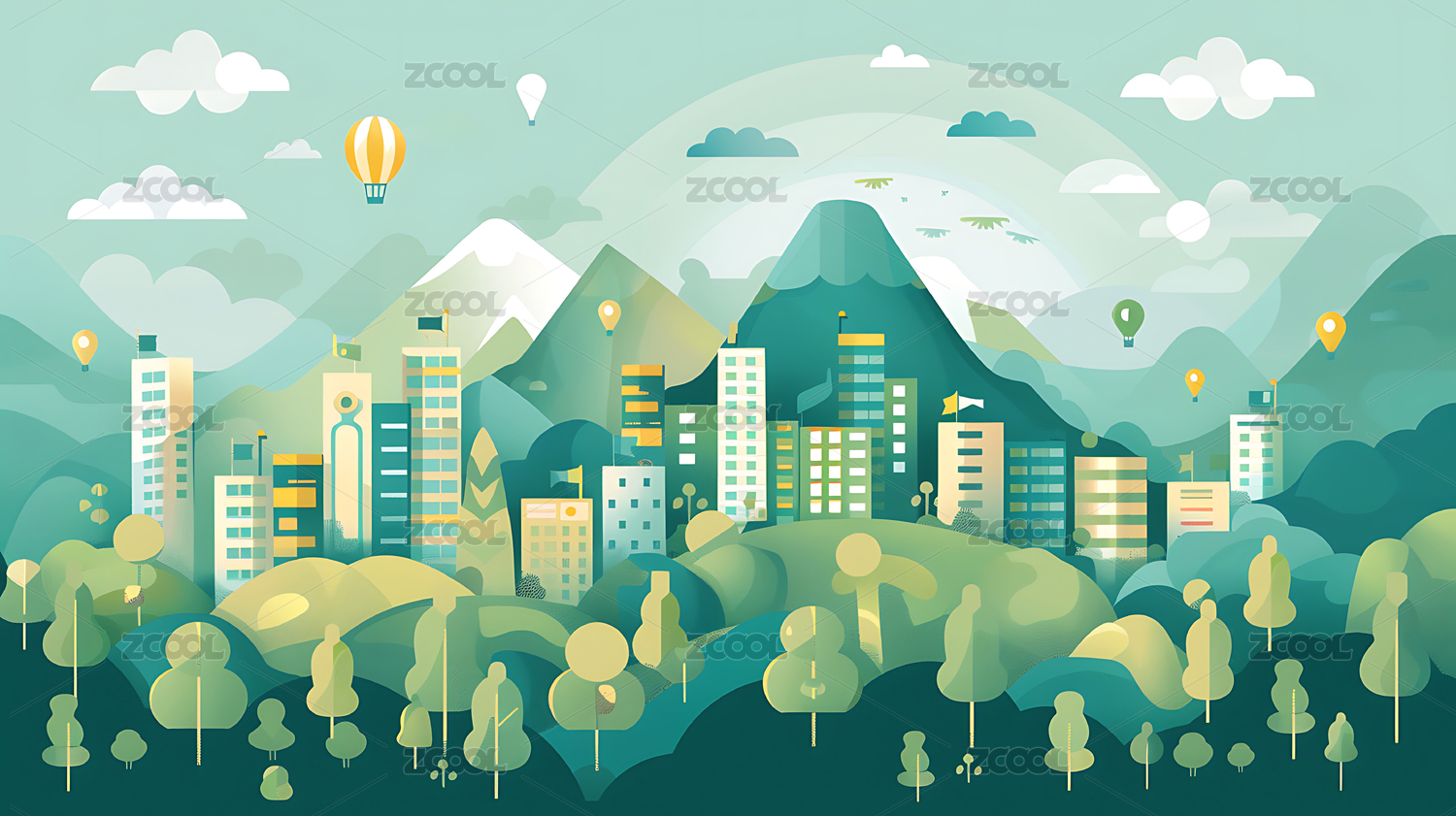 城市与自然和谐共生的插画