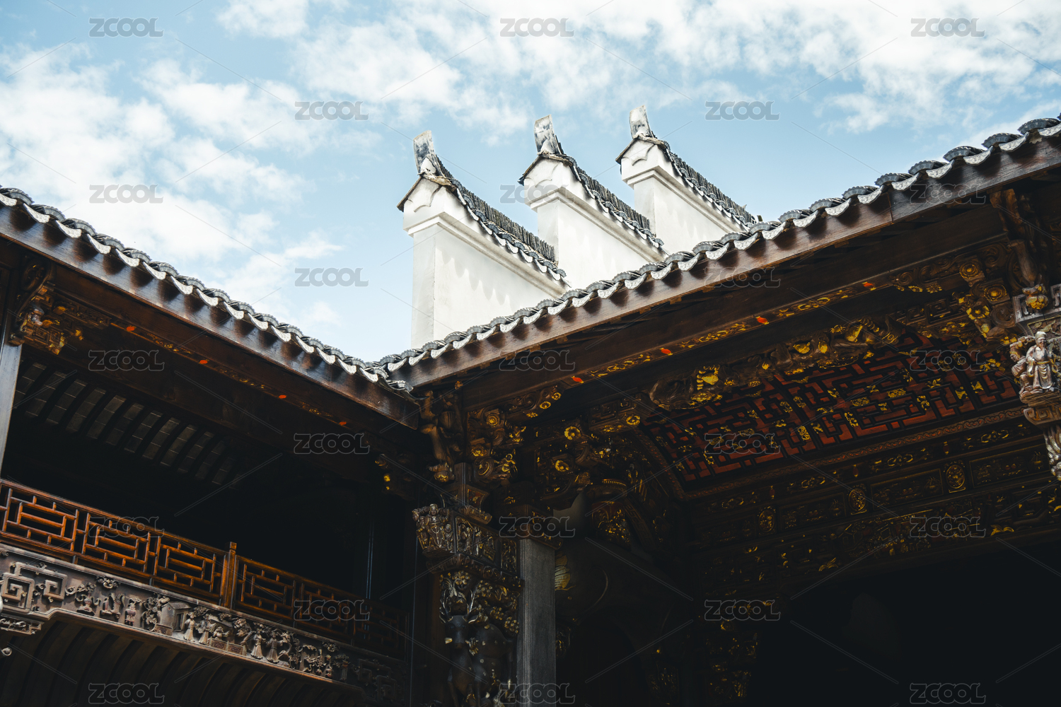 中国传统建筑的屋顶局部特写
