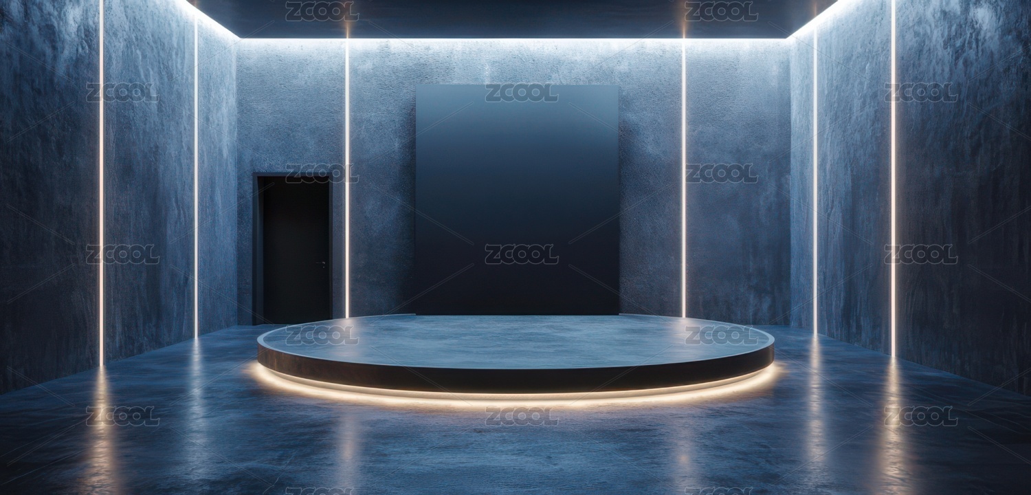舞台,圆形,展台,霓虹灯,蓝色,紫色,灯光,光影,神秘,科技感