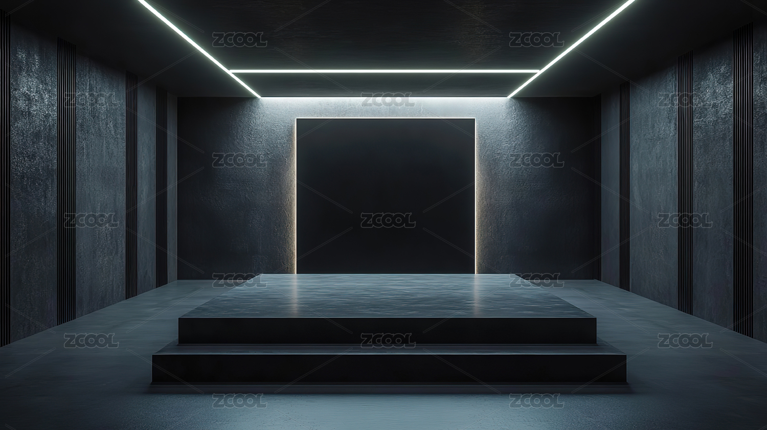蓝色混凝土几何建筑室内概念空间设计空背景