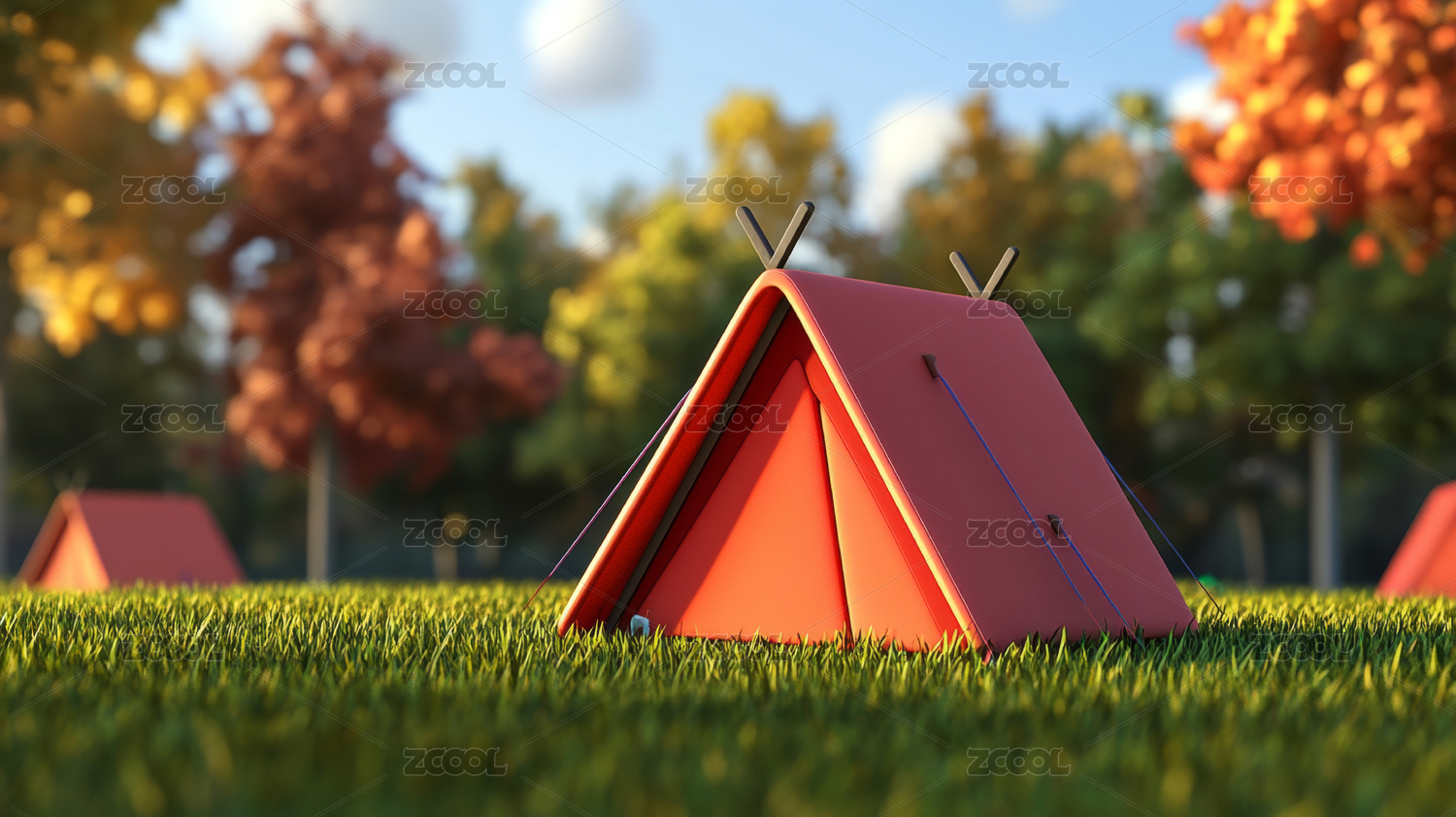 卡通3D草地上的帐篷插画