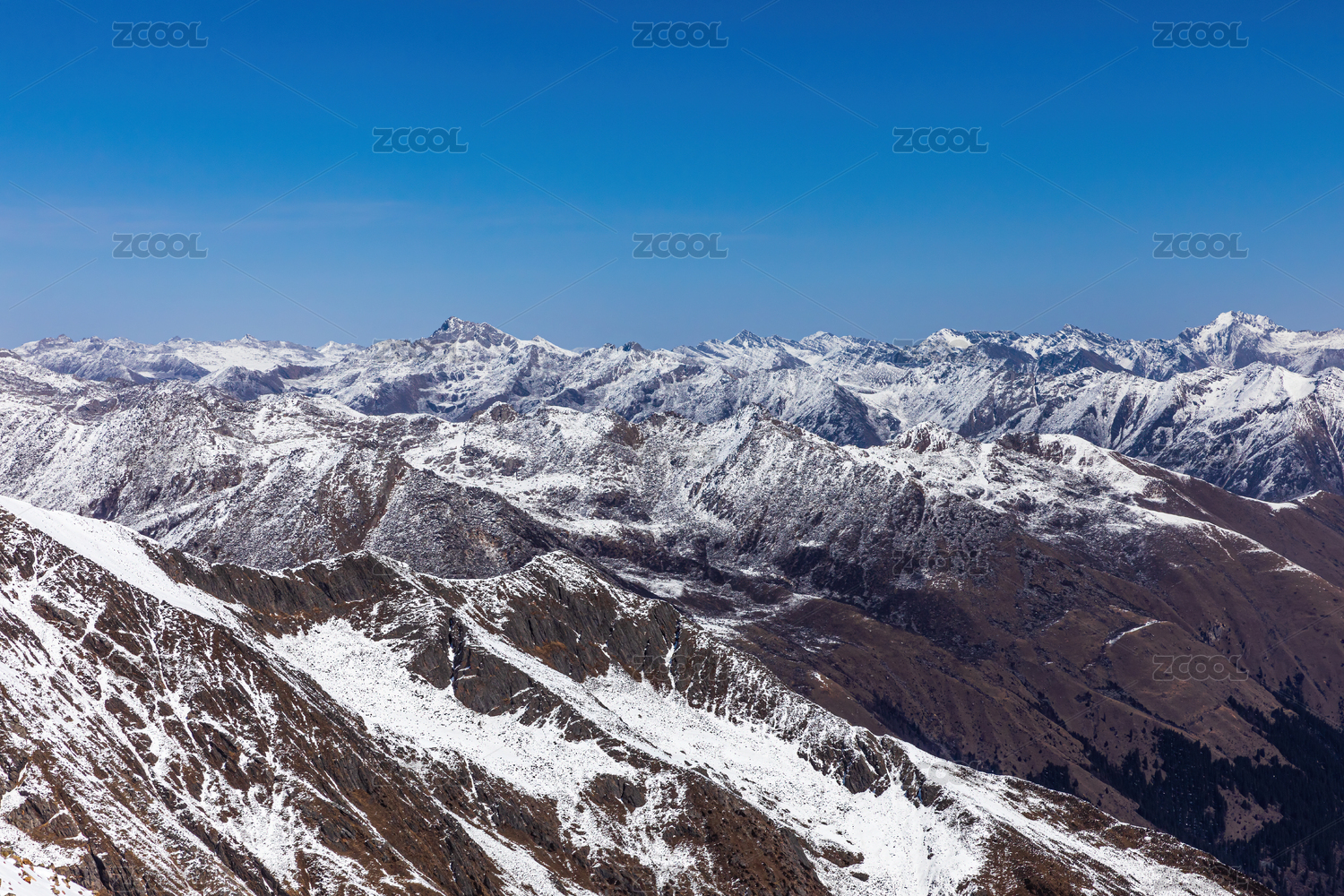蓝天为背景的雪山风光