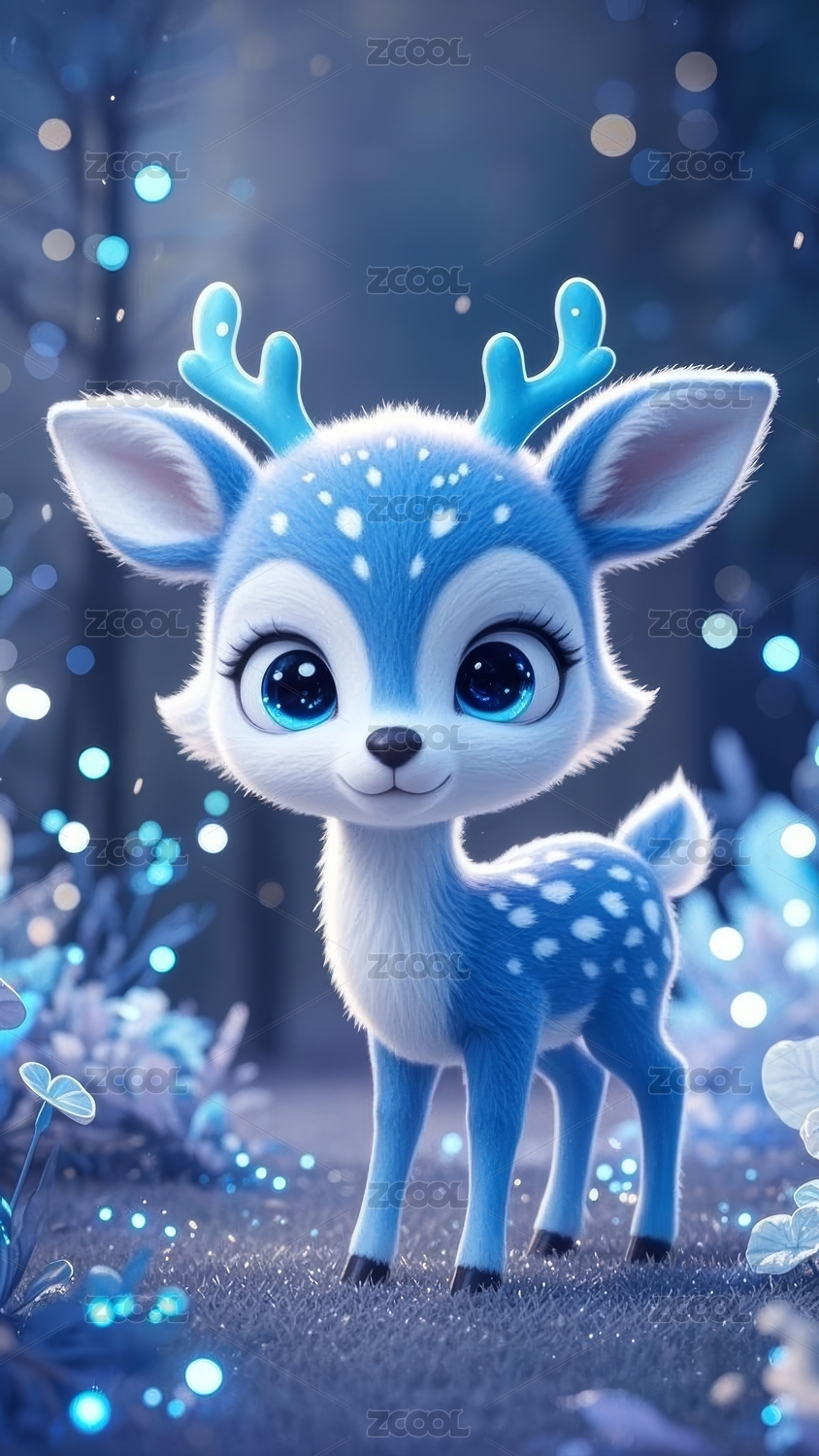 梅花鹿可爱唯美野生动物3D卡通插画壁纸