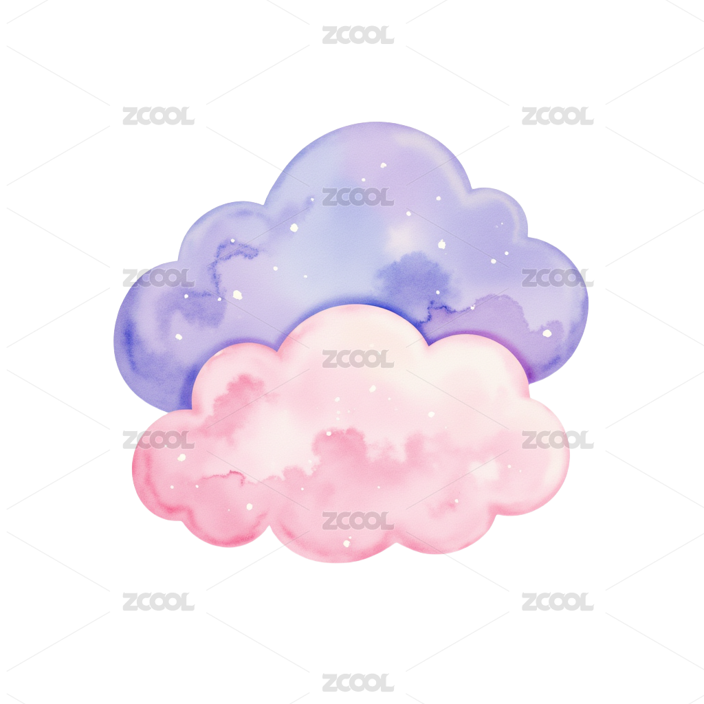 粉蓝渐变水彩云朵插画清新治愈设计素材