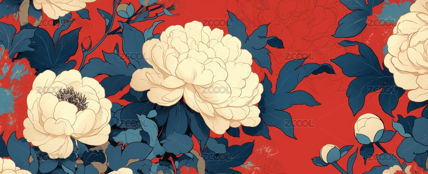 吉祥,富贵,牡丹花,新年,春节,花卉,中式,复古,豪华,盛开