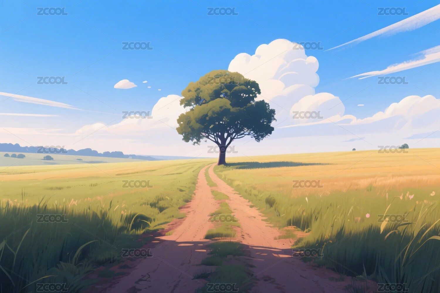 立秋节气户外旅行自然风景处暑卡通唯美插画