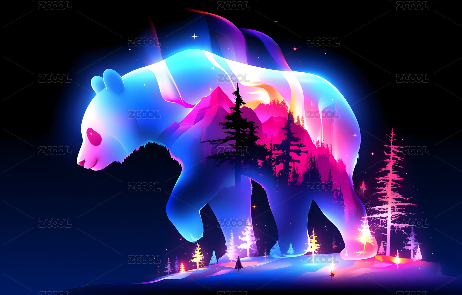 创意渐变动物熊唯美插画