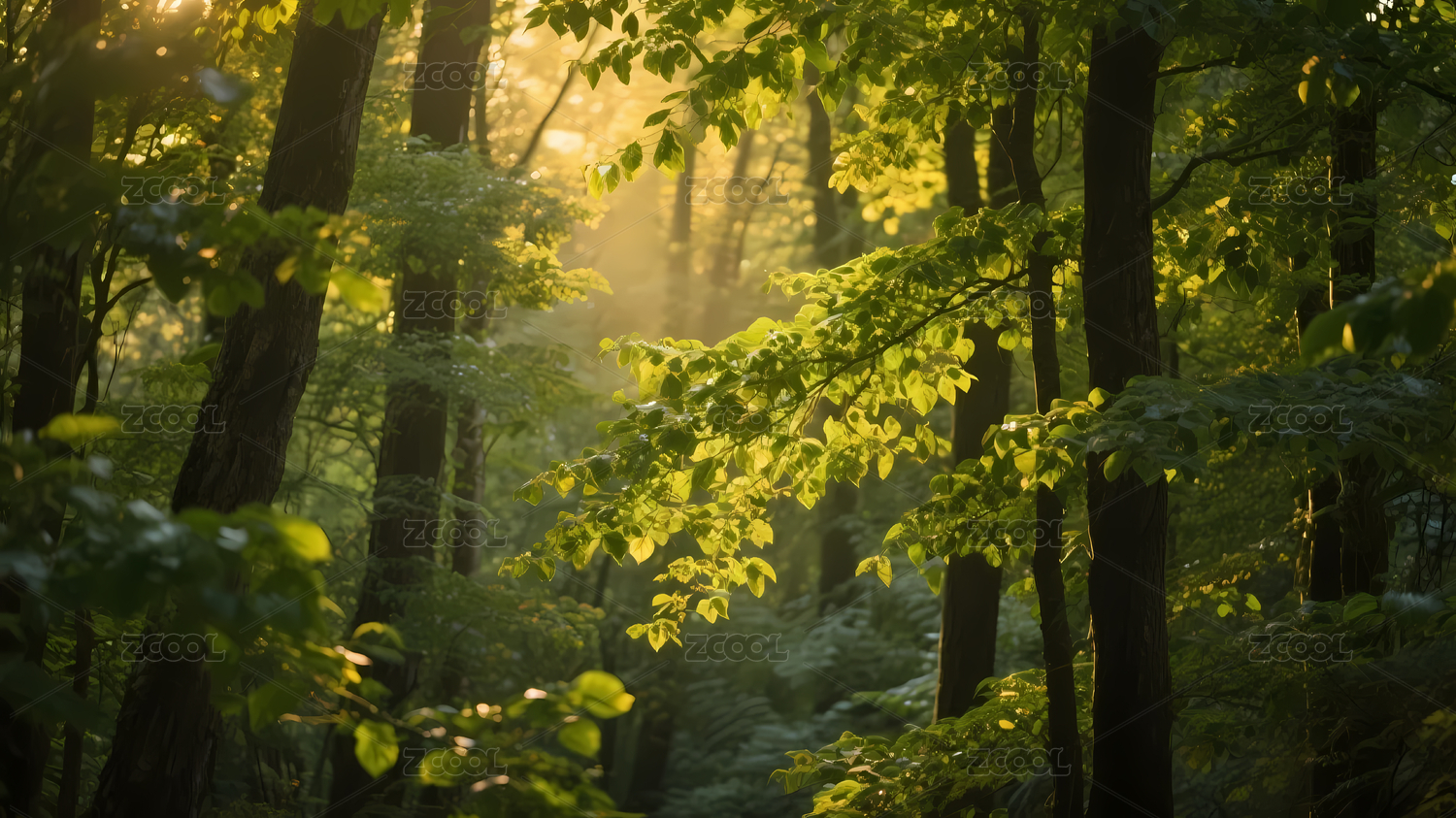 阳光洒落的森林景象