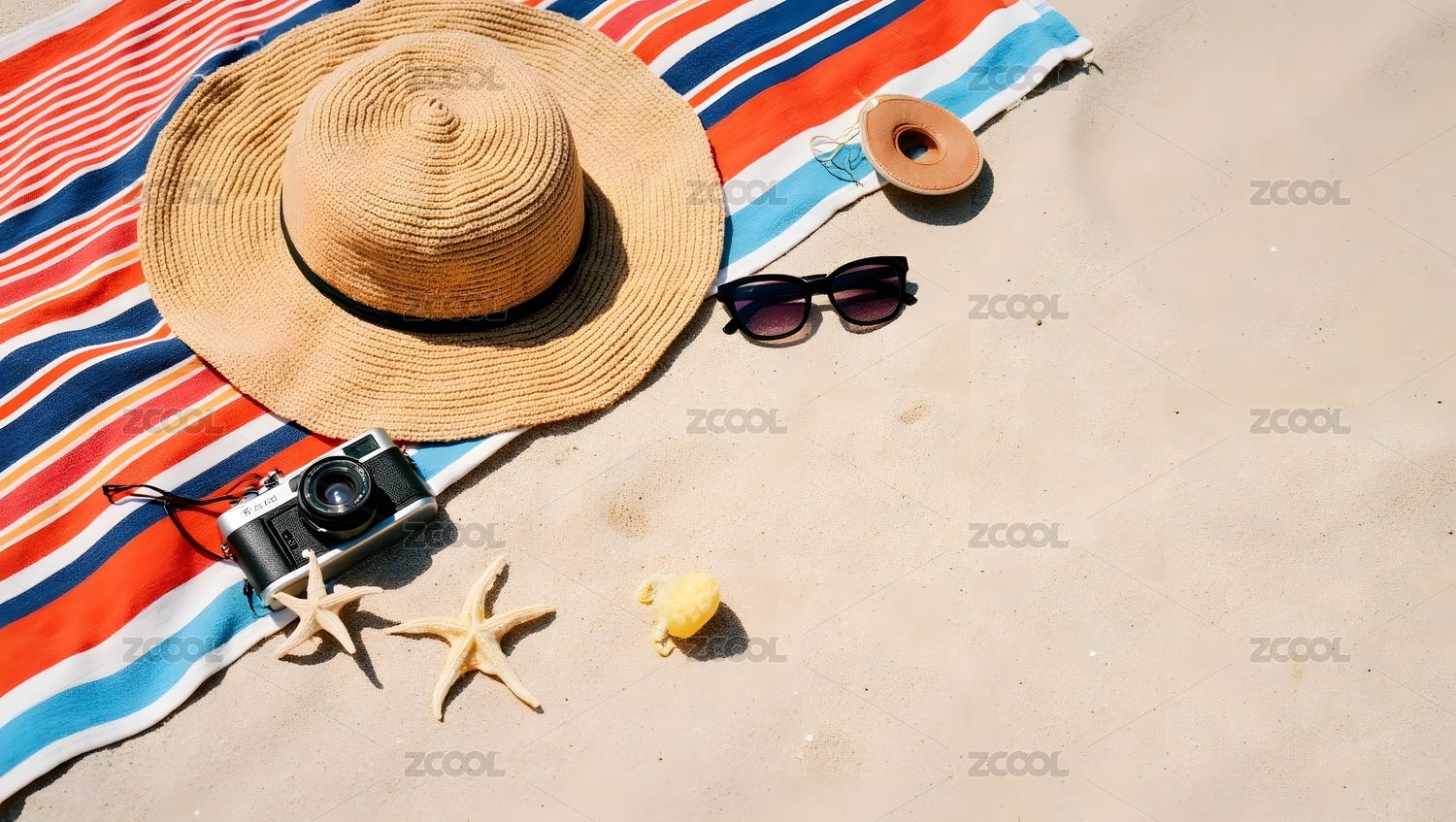 海边度假需要的遮阳帽墨镜等日用品