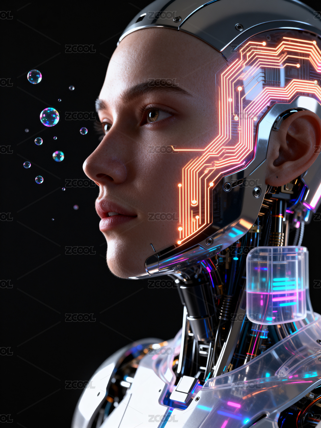 未来科技感十足的少女侧脸肖像