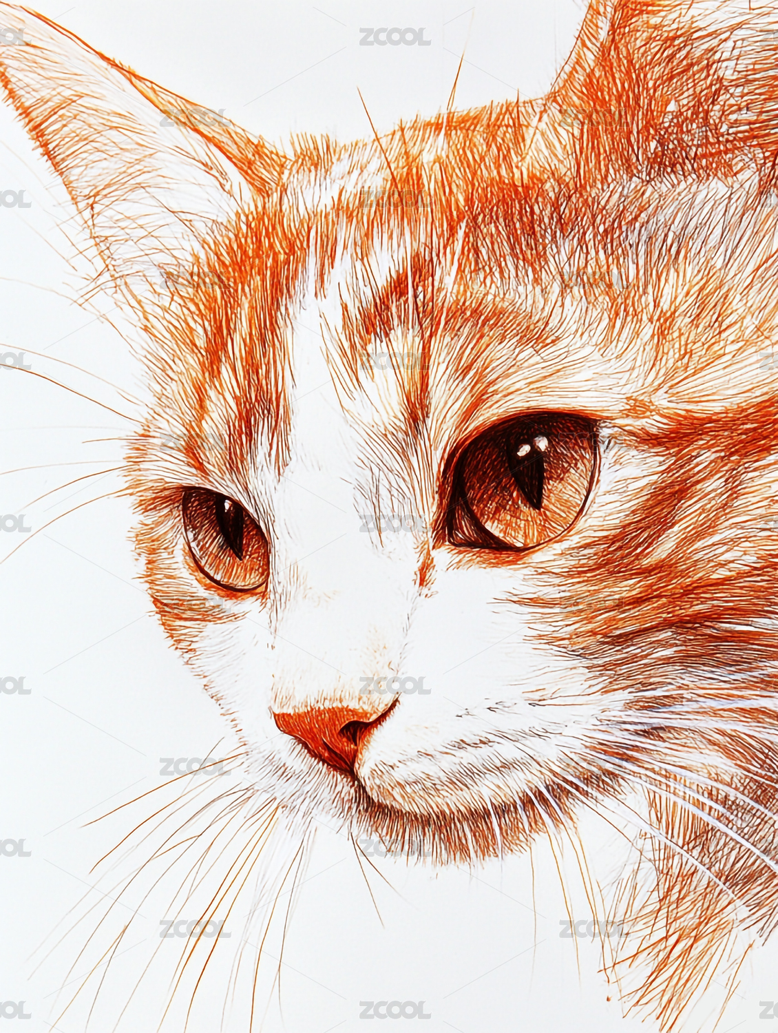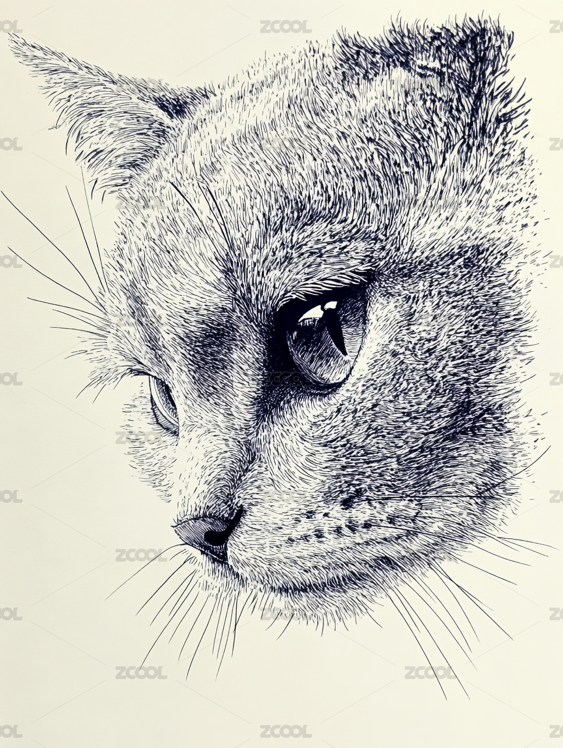猫咪,猫,眼睛,毛发,黑白,素描,动物,宠物,肖像,特写