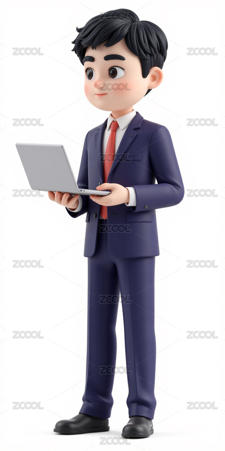 卡通人物穿蓝色西装手持文件