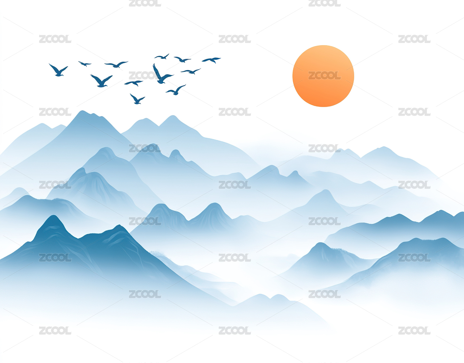 山脉,AIGC202404,山川,高山,大山,地形,云,水墨画,扁平风