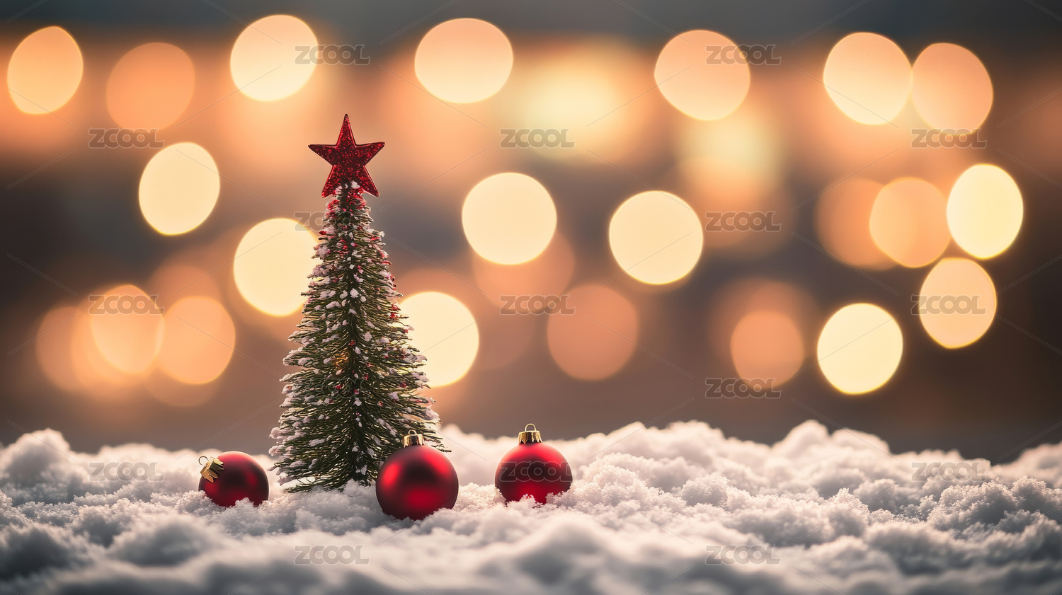 雪地红色圣诞球氛围感静物背景