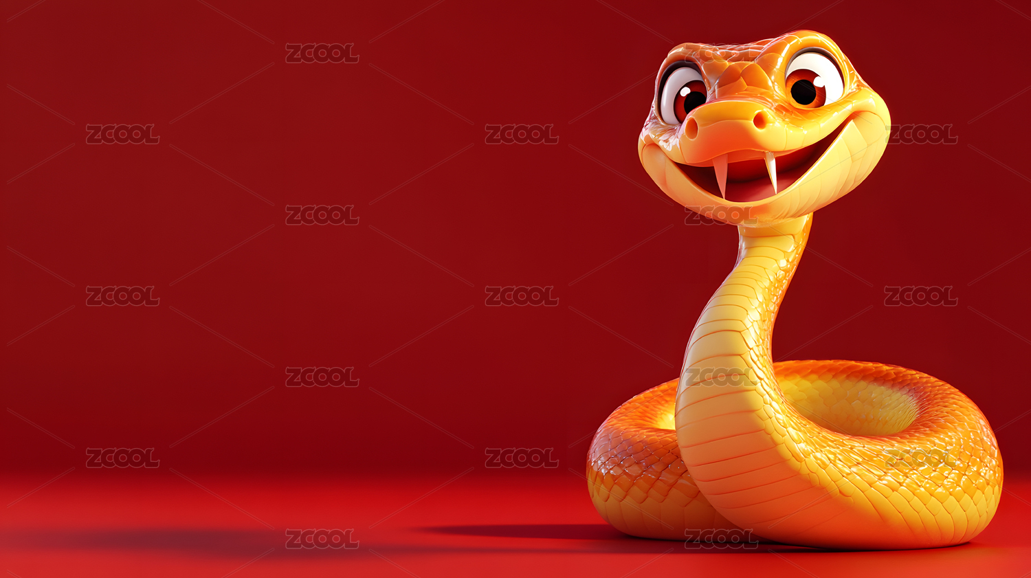 可爱的3D癸巳年蛇年小蛇卡通插画