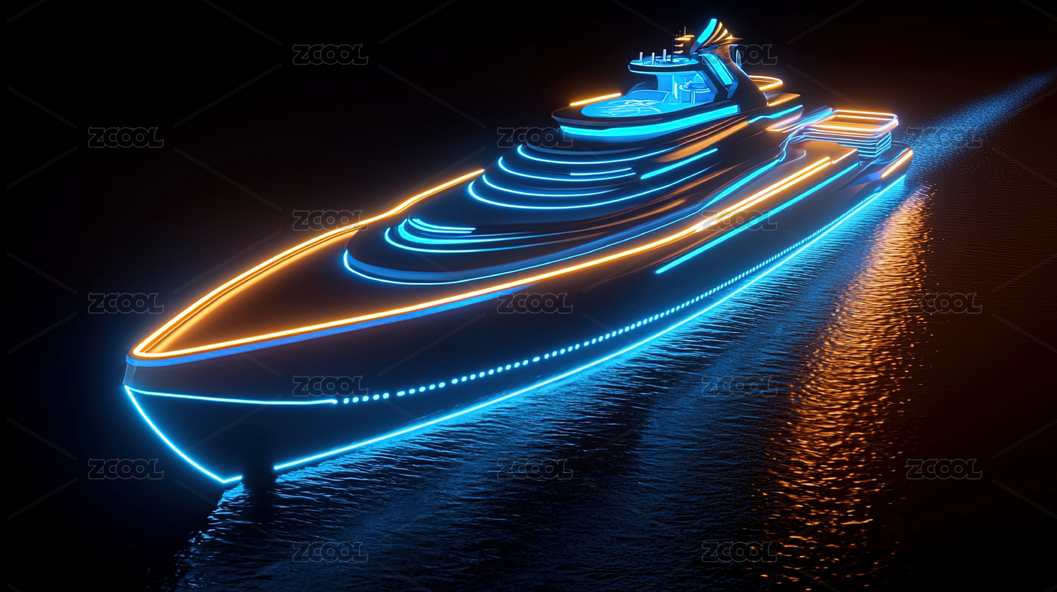 炫酷游艇夜景