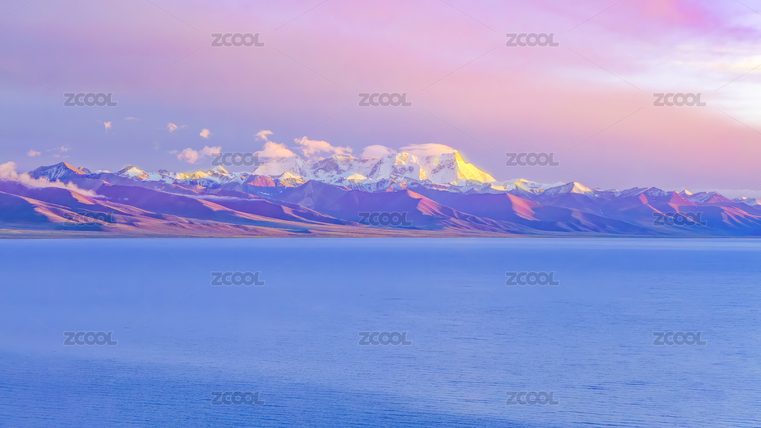 中国西藏当雄县纳木错日照金山彩云