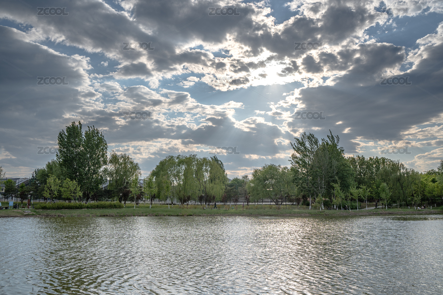 自然,公园,晚霞,彩霞,夕阳,水面,倒影,彩云,旅行,假日