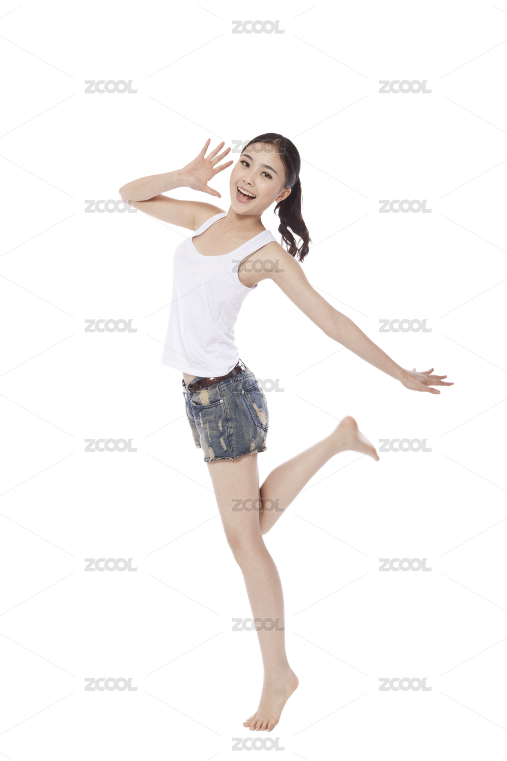 年轻女子跳入空中