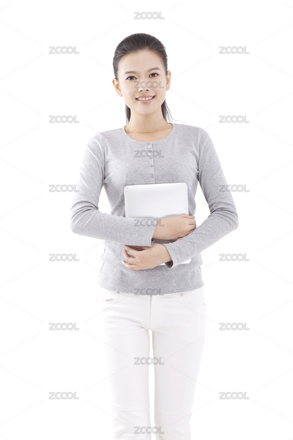 东方时尚年轻女性拿着一个文件夹