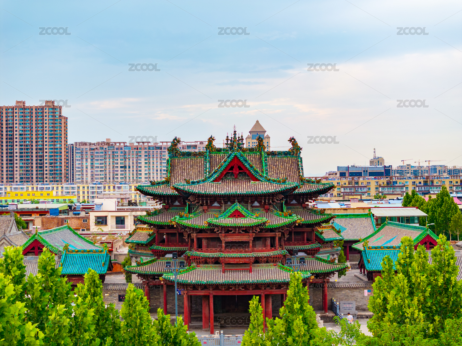 山西,晋中,介休,祆神楼,古建筑,寺庙,寺院,琉璃,青色,瓦