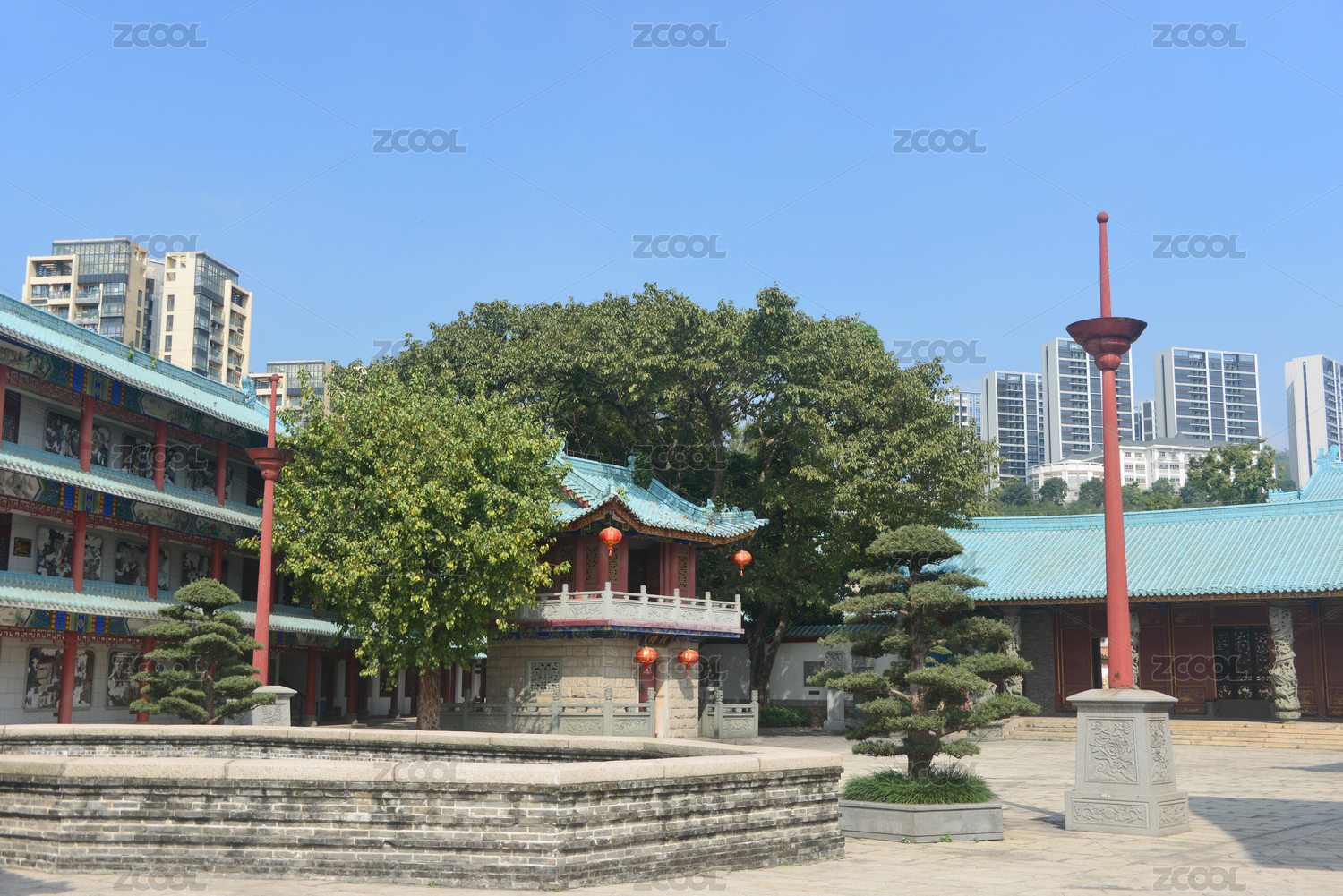 中国广东深圳赤湾天后古庙 鼓楼和旗杆