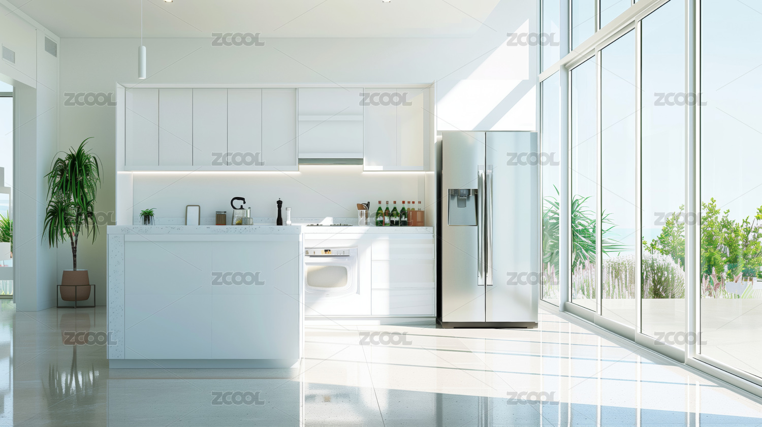 厨房,室内,冰箱,油烟机,厨具,极简,设计,日光,无人,现代
