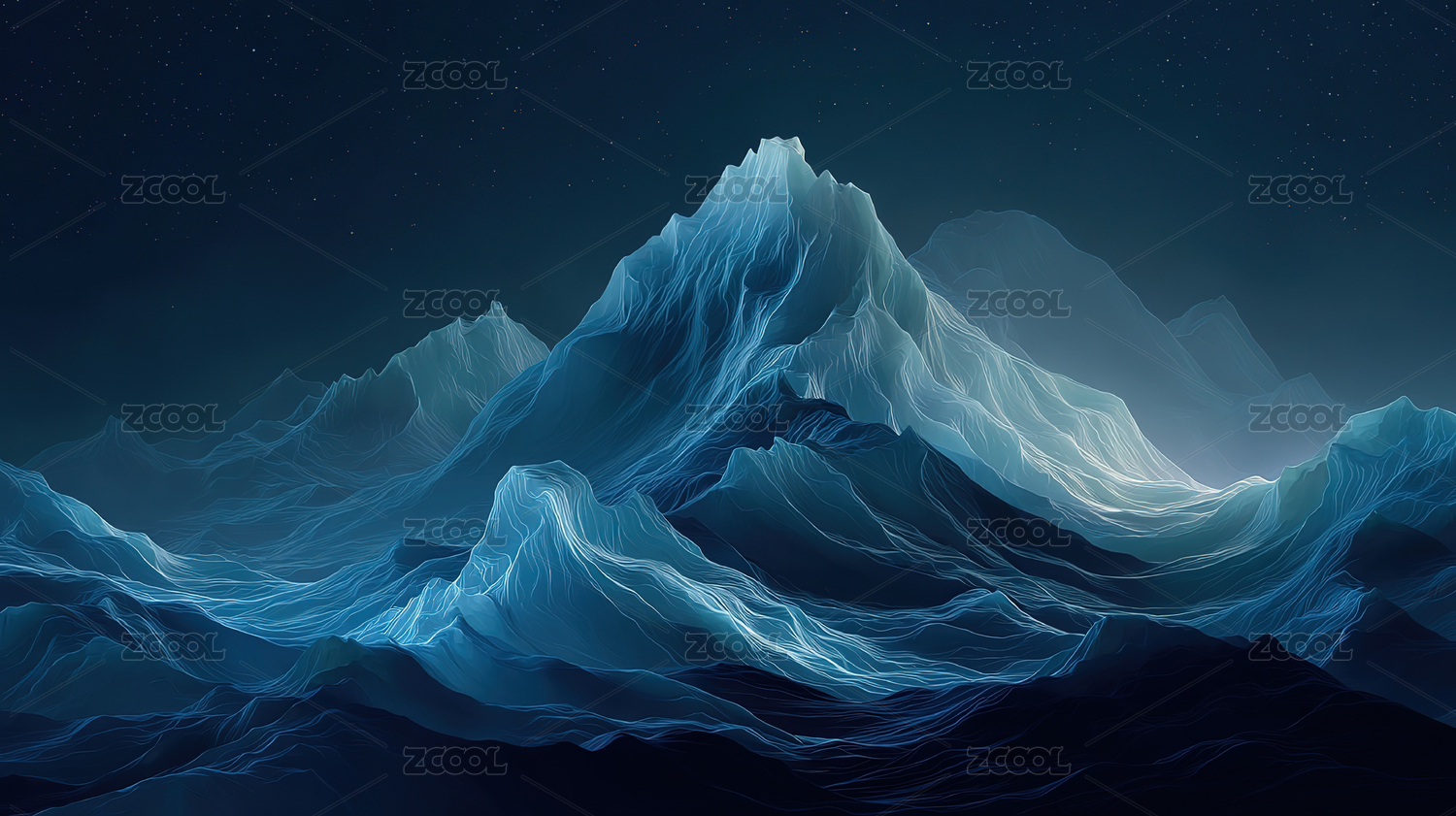 星空下的蓝色山峦仙境