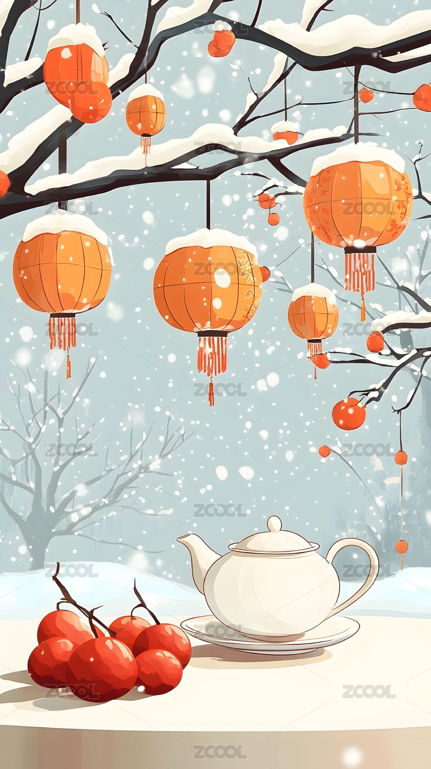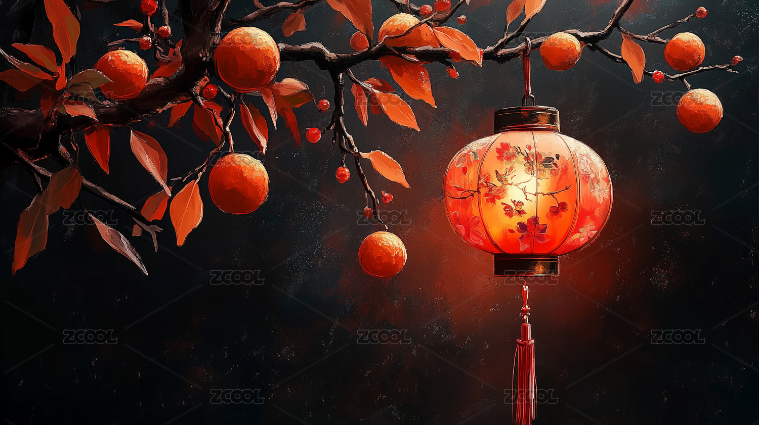 AIGCFG,中国风,水墨,插画,中式风格,国潮风,橙子,水果,桌子,空间