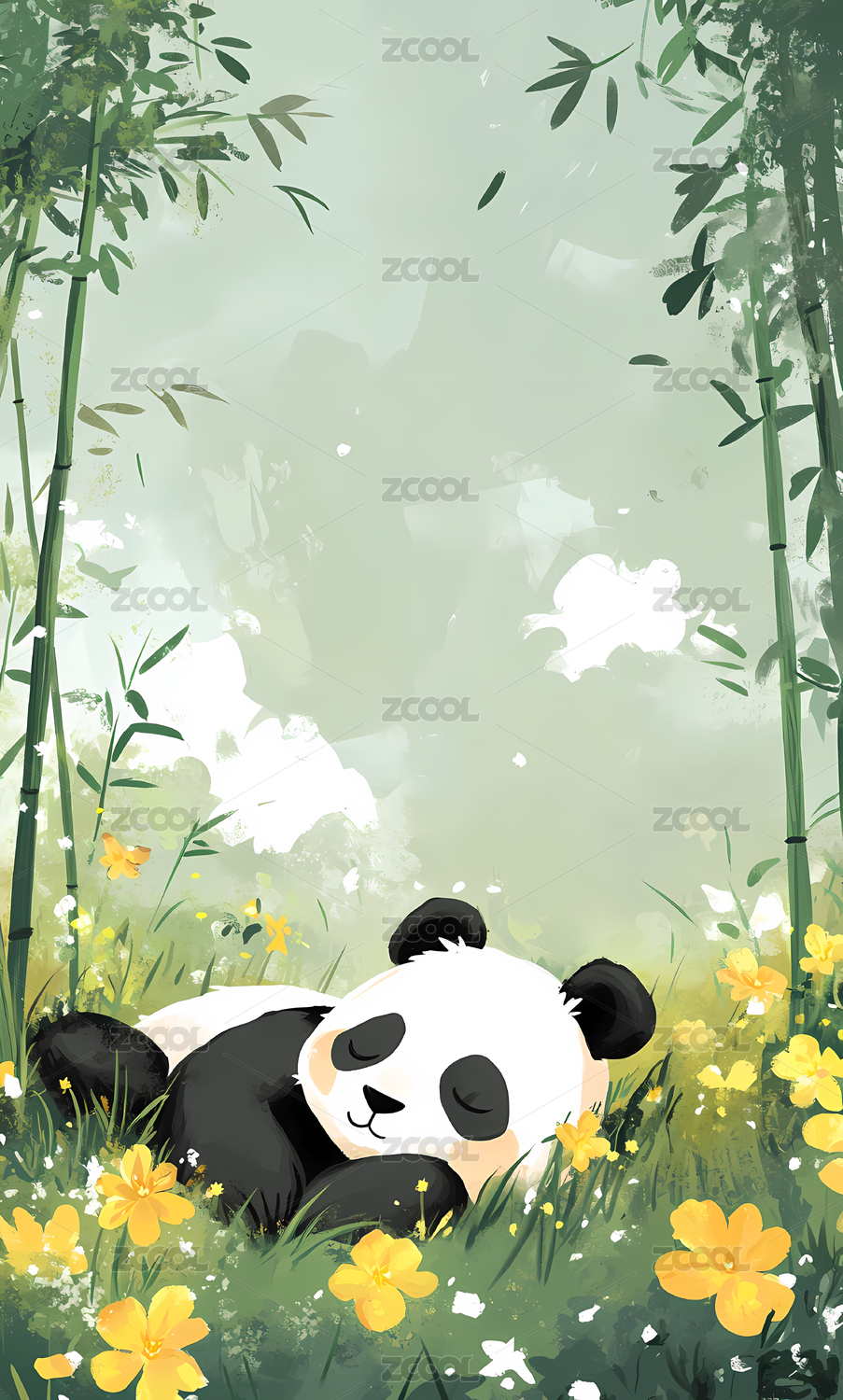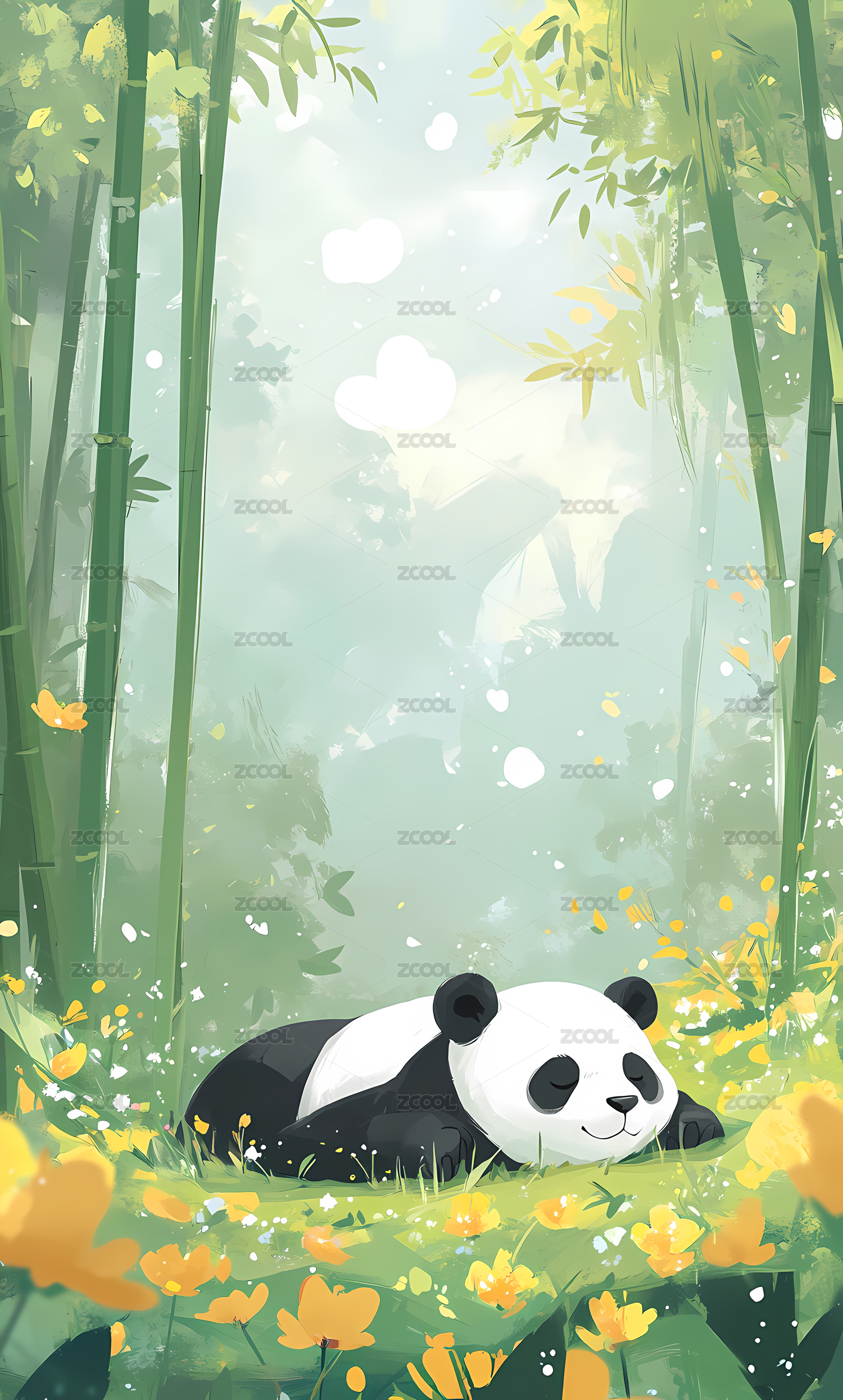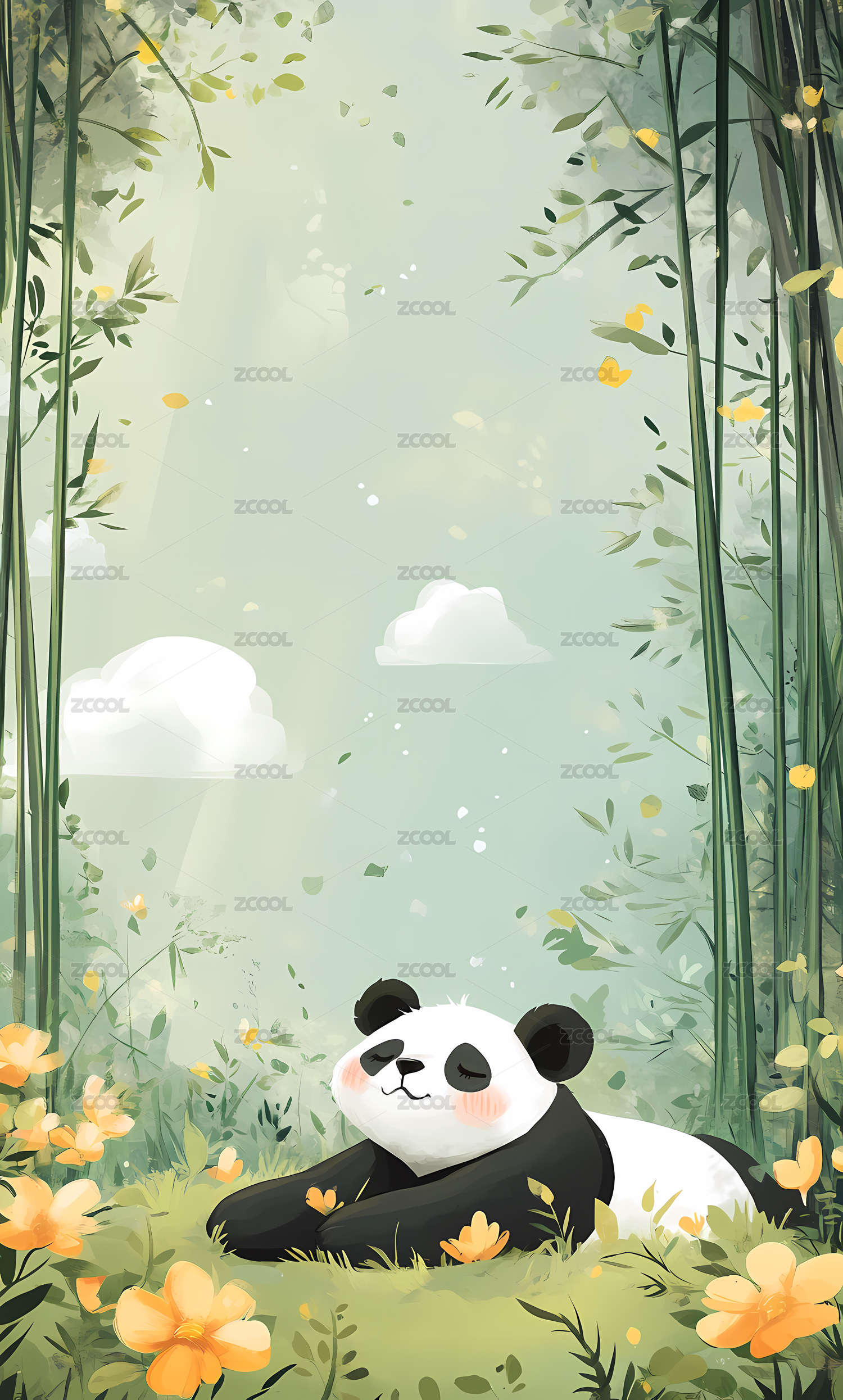 AIGCFG02,可爱,熊猫,竹林,竹子,卡通,插画,国宝,大熊猫