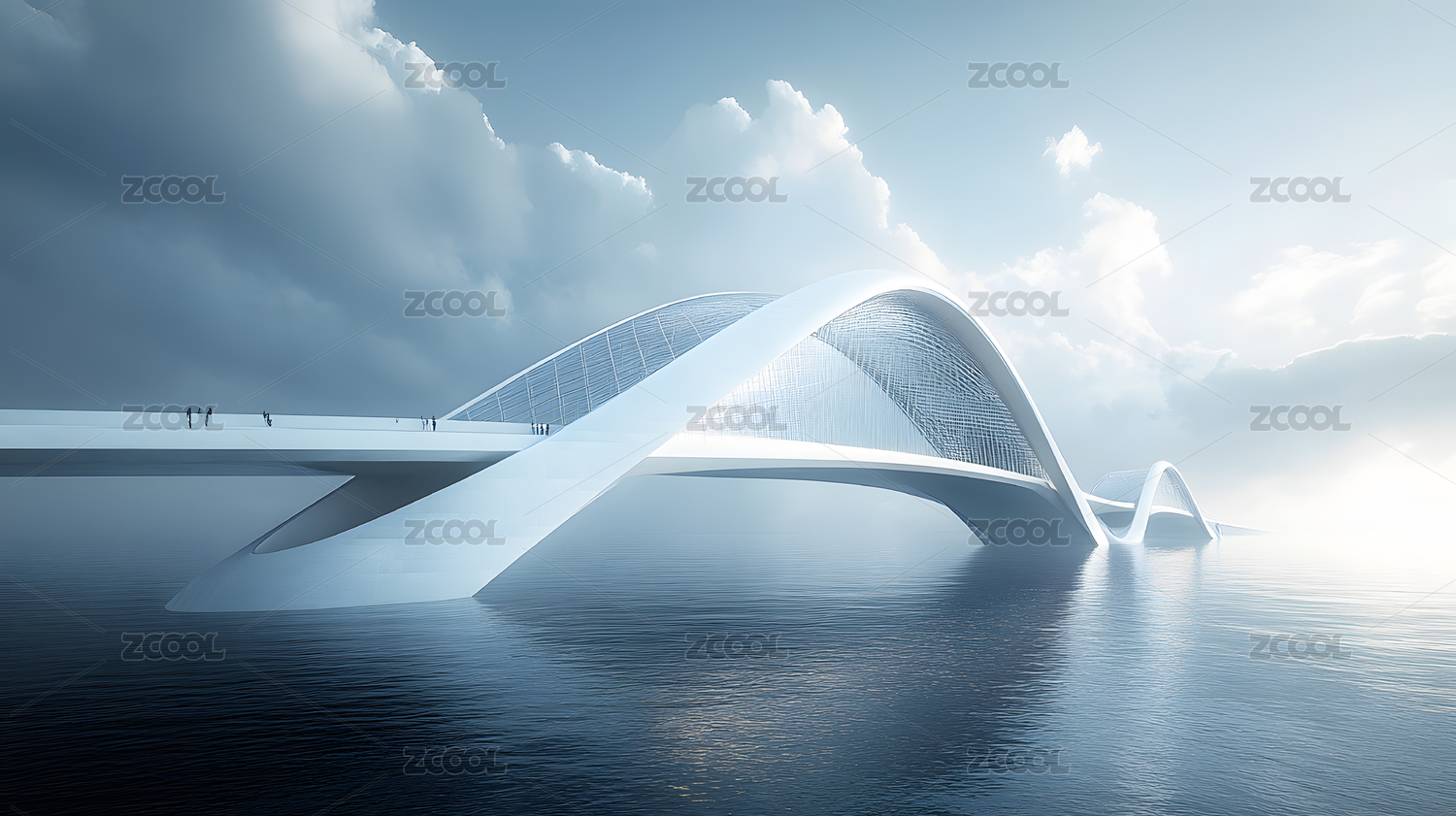 未来科技感白色跨海大桥