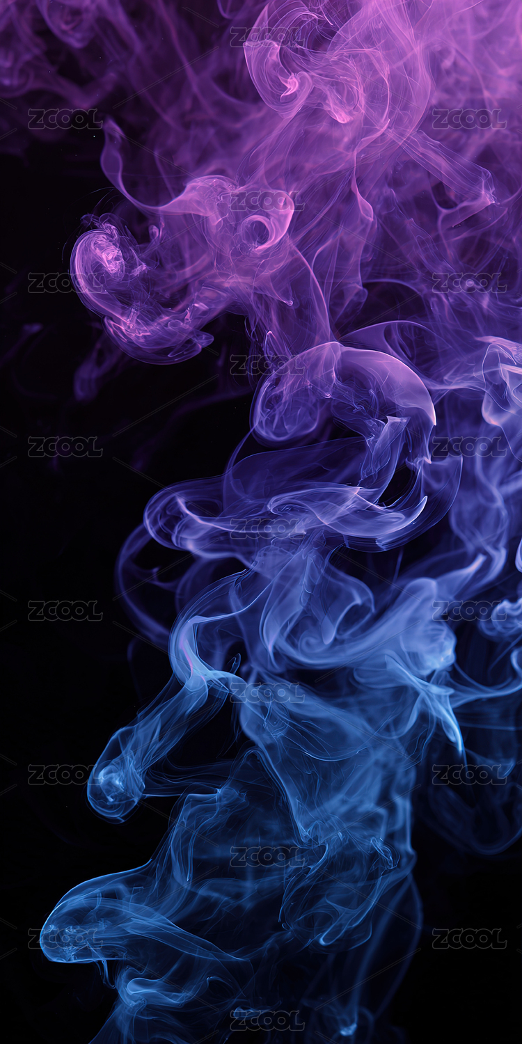 梦幻般的彩色烟雾在深蓝色背景上漂浮