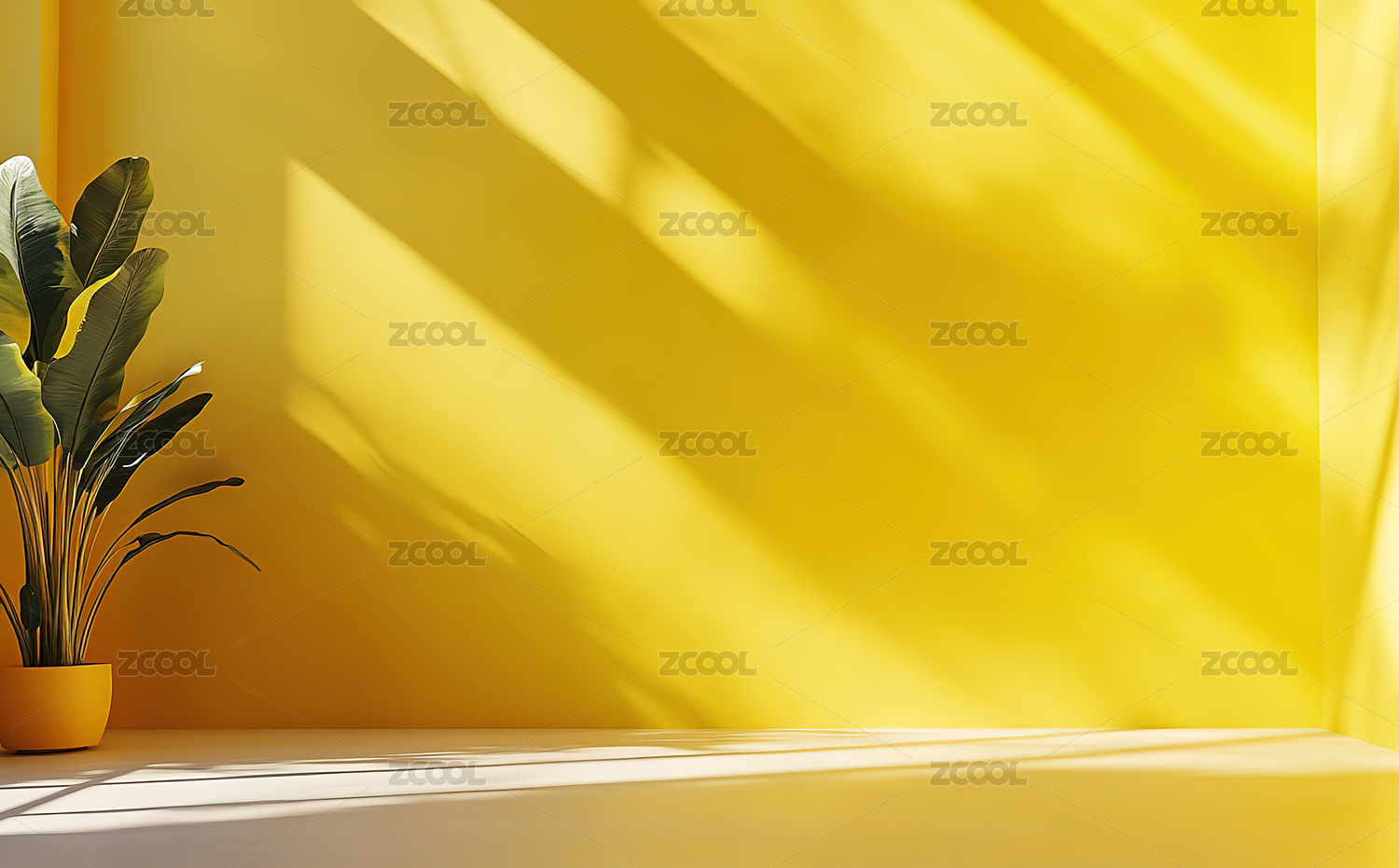干净的室内白墙和绿植装饰简约空白渲染背景