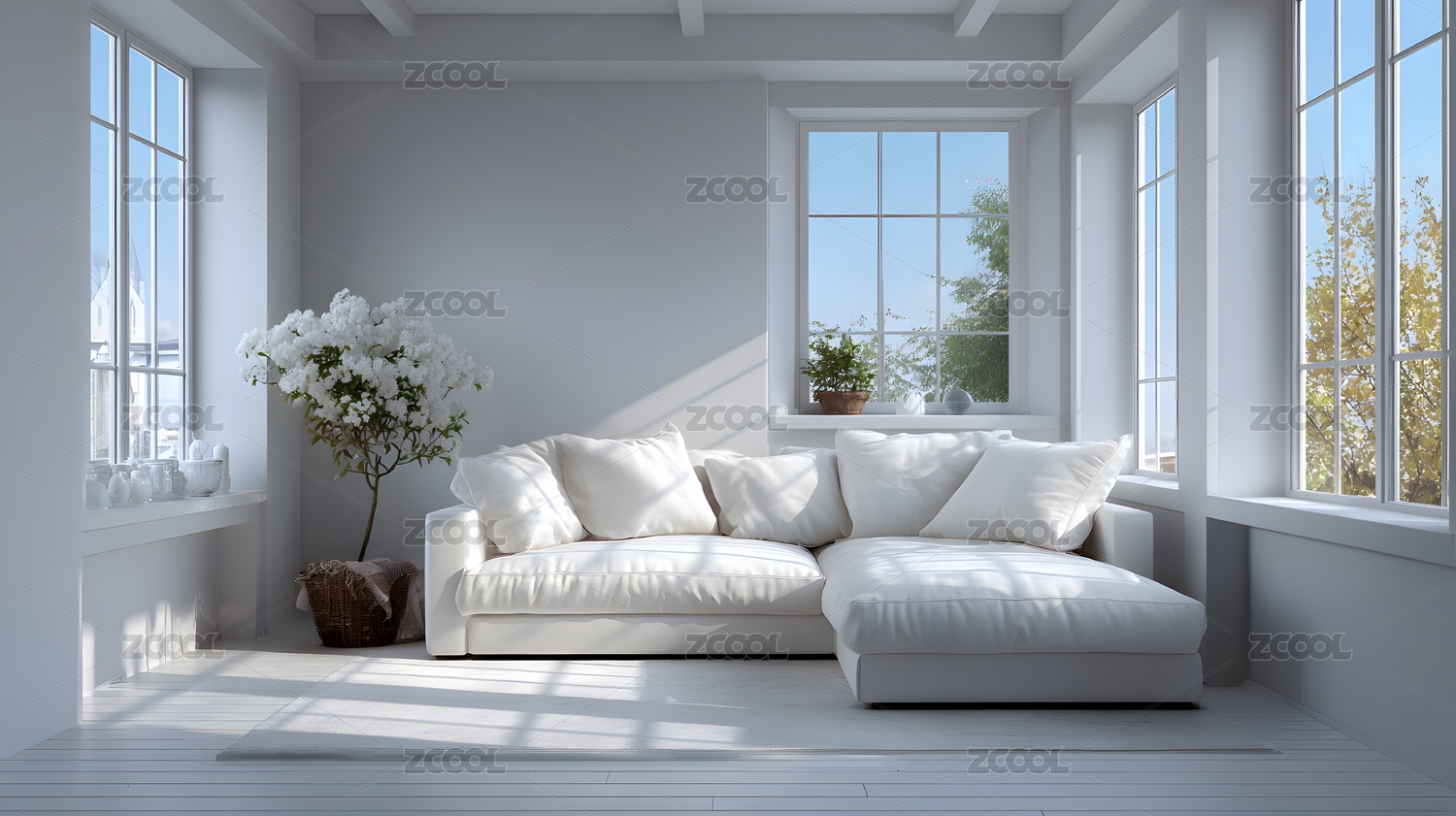 室内,沙发,AI数字艺术,窗户,住宅内部,现代,家具,样板间,白色,住宅房间