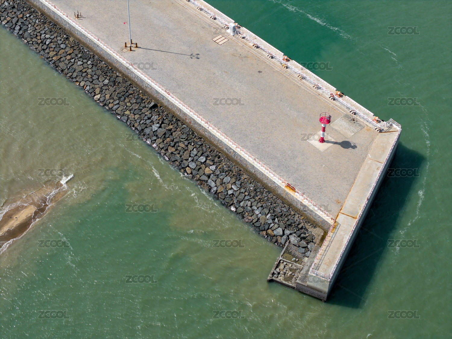 中国天津东疆港海边的混凝土块防波堤航拍图