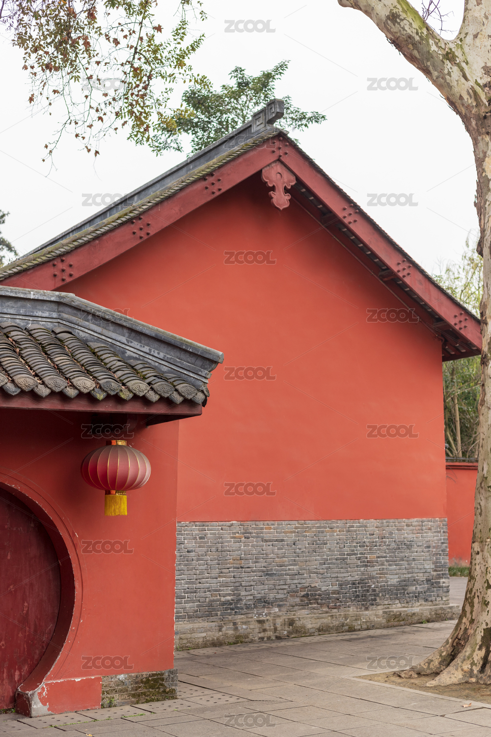 中国成都杜甫草堂博物馆花径竹林与红墙