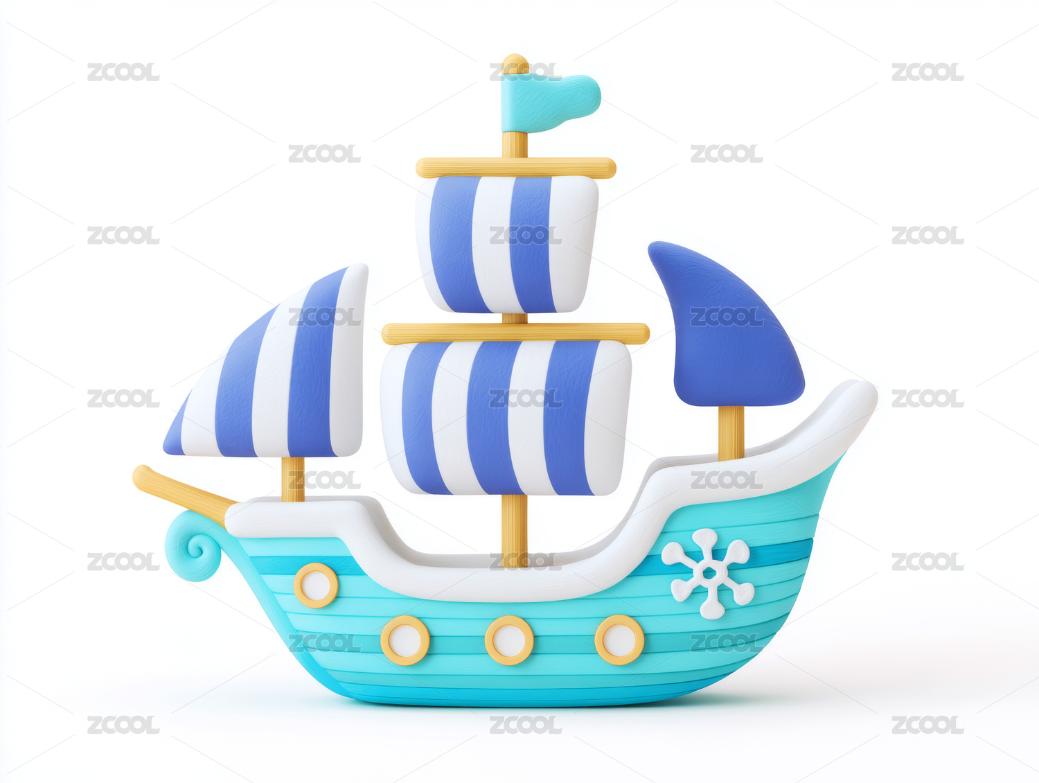 无人,插画,三维,三维图形,3D,可爱,卡通,交通,交通工具,船