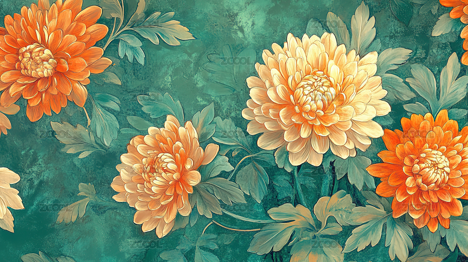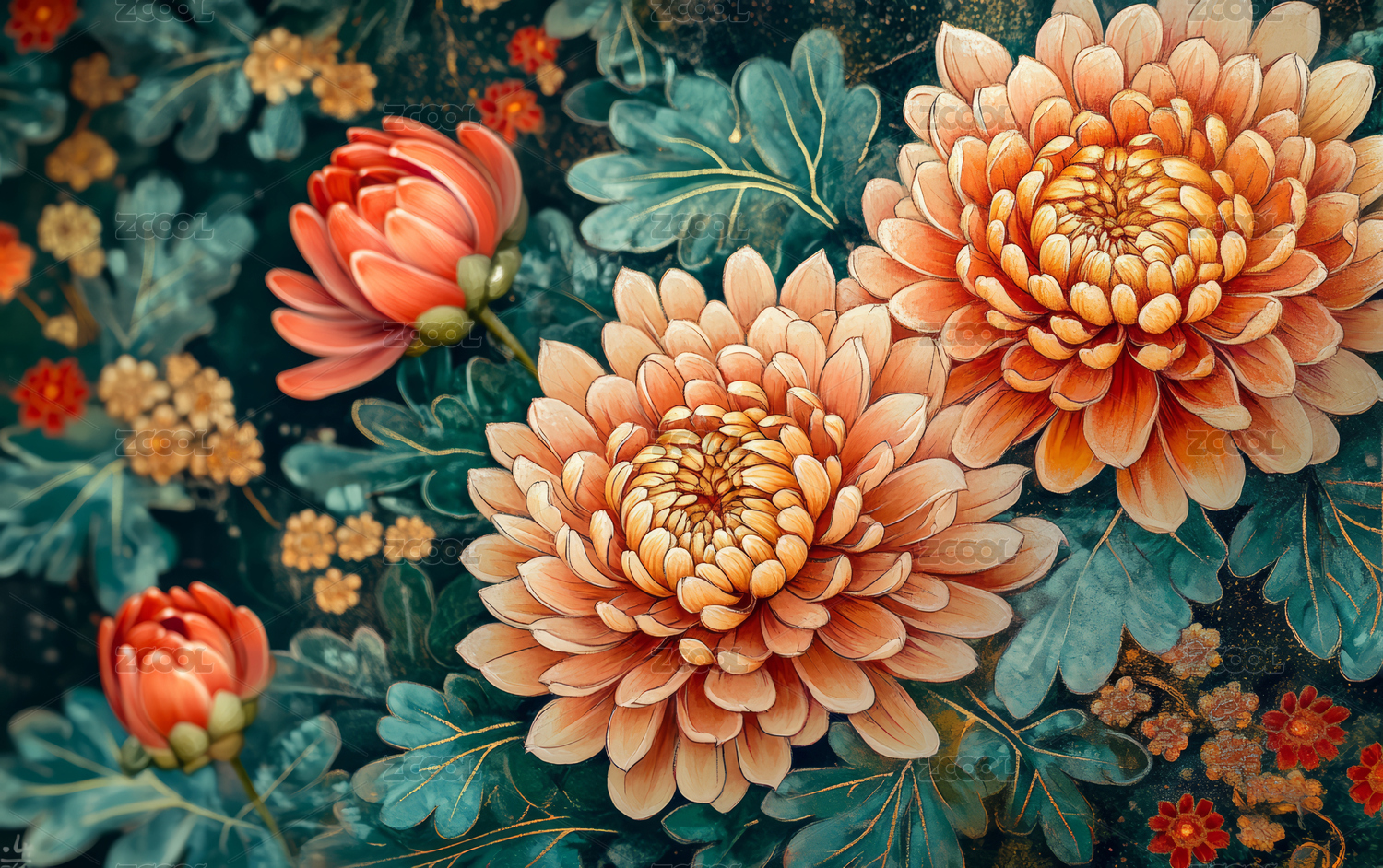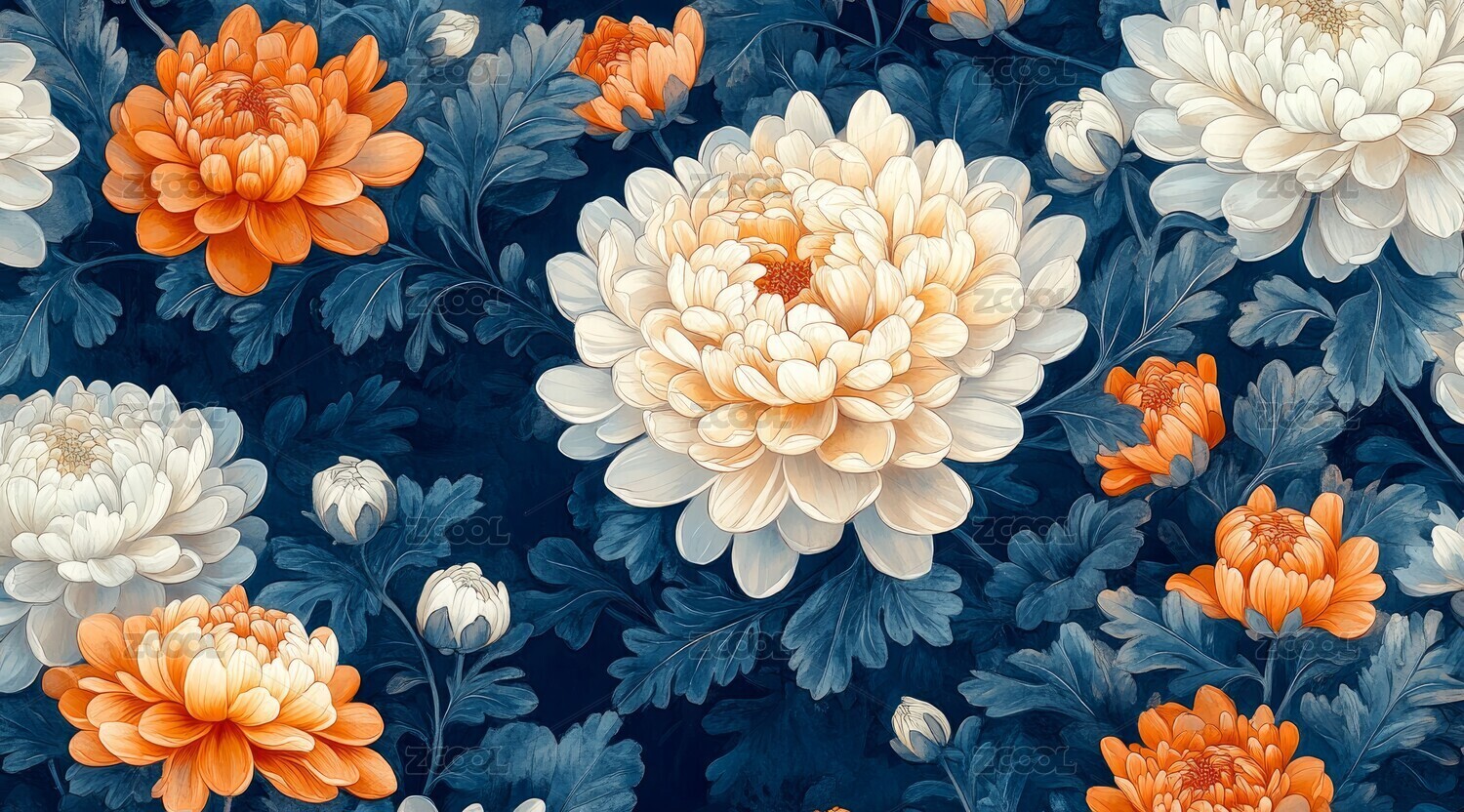 国风蓝底菊花艺术插画