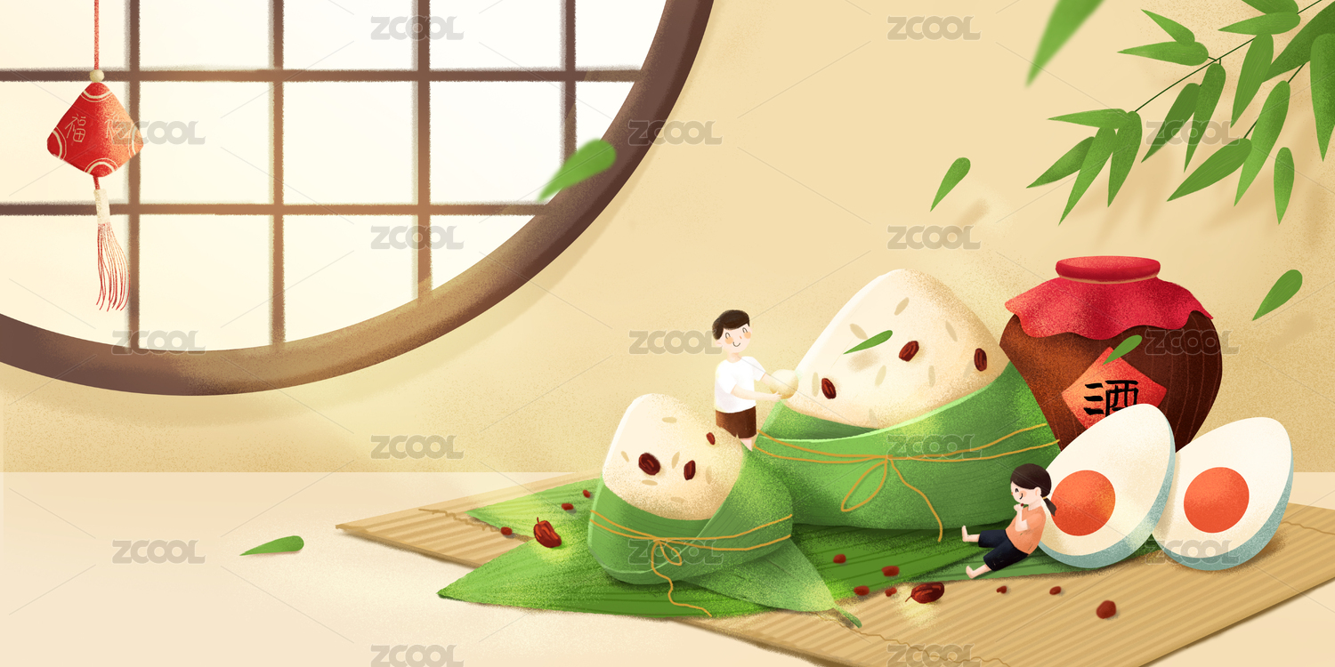 包粽子端午节插画横副