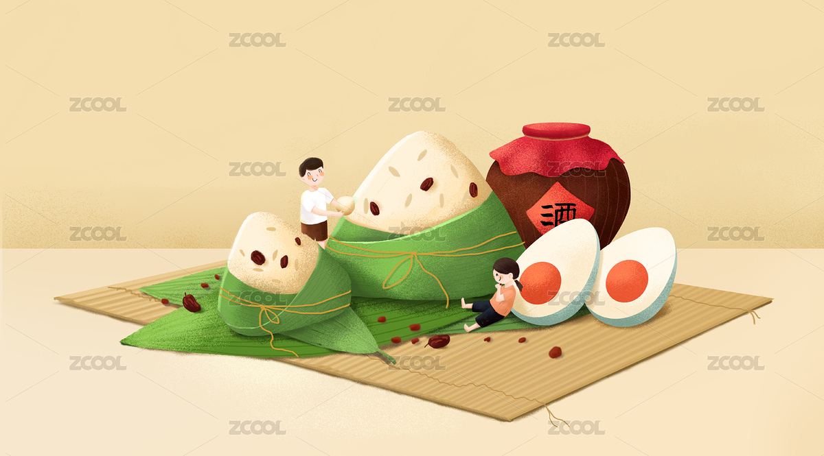 HECDBF2020,端午,粽子,酒,咸鸭蛋,福袋,插画,手绘,小孩,传统节日