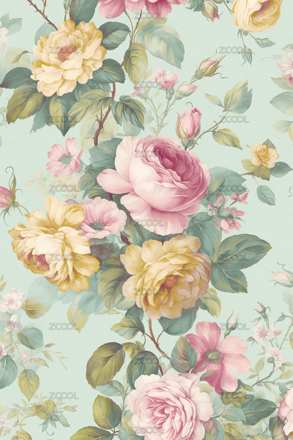 大花,粉花,红花,黄花,叶子,高雅,插画,壁纸,背景,碎花