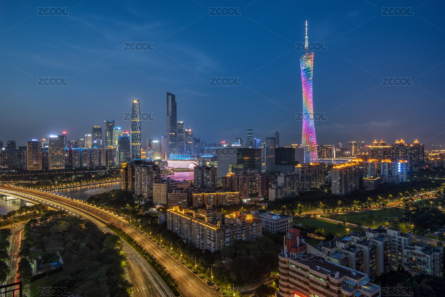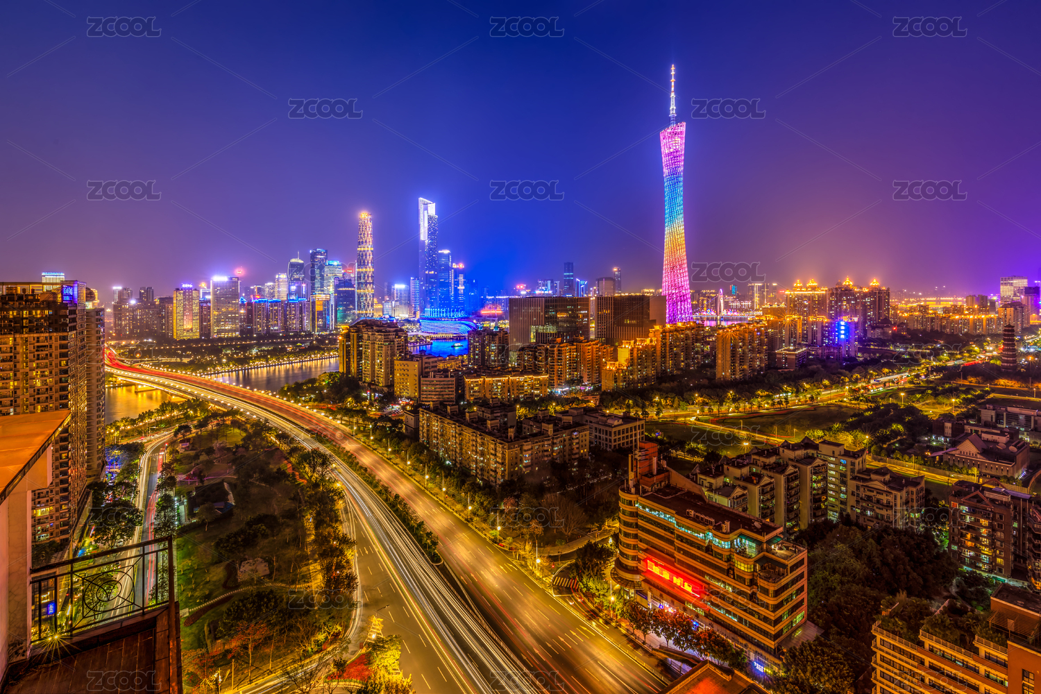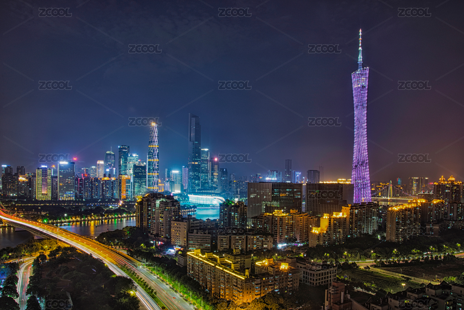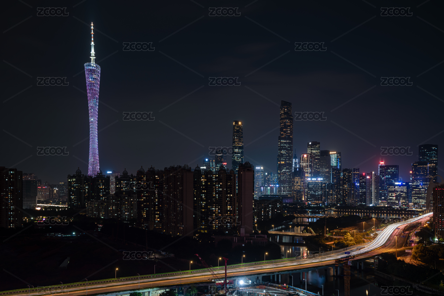 虚焦和双重曝光拍摄夜晚的广州城市风光