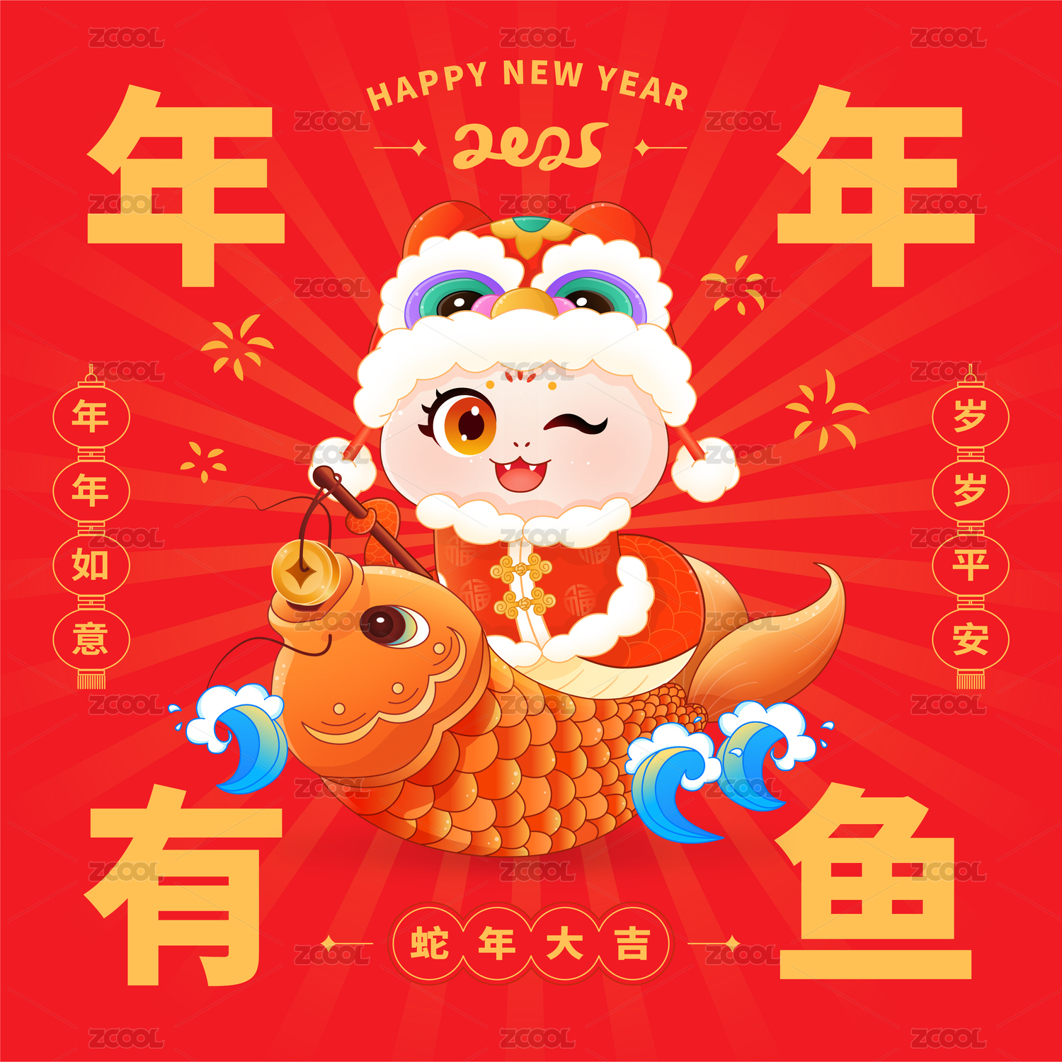 2025蛇年年年有鱼插画