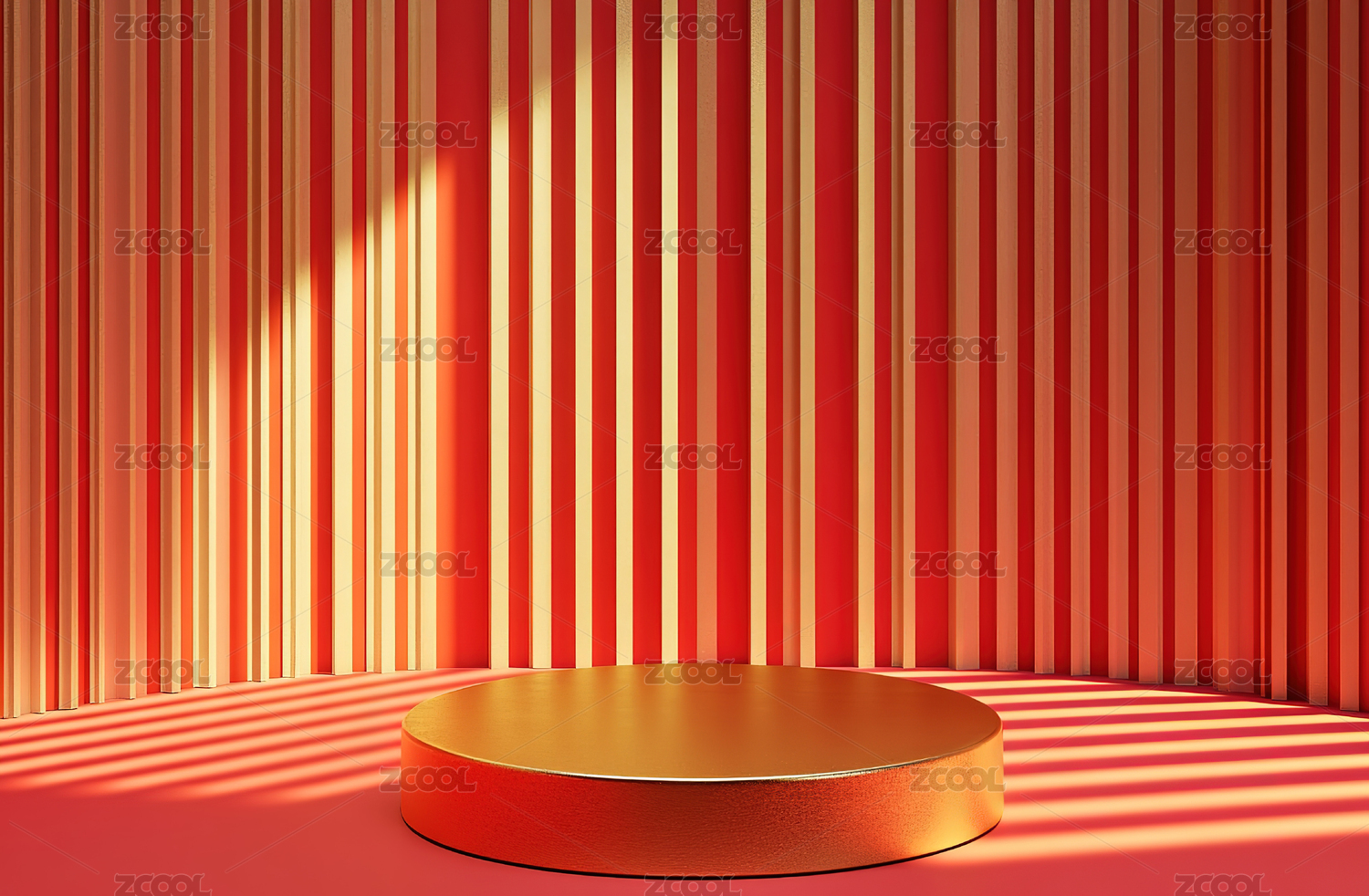 红色圆台与竖条背景