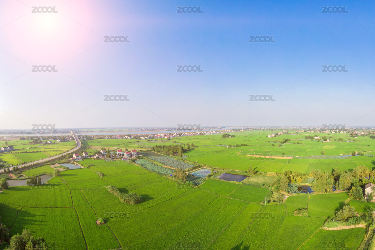 航拍中国安徽省郎溪县现代农业示范区夕阳下的田园风光