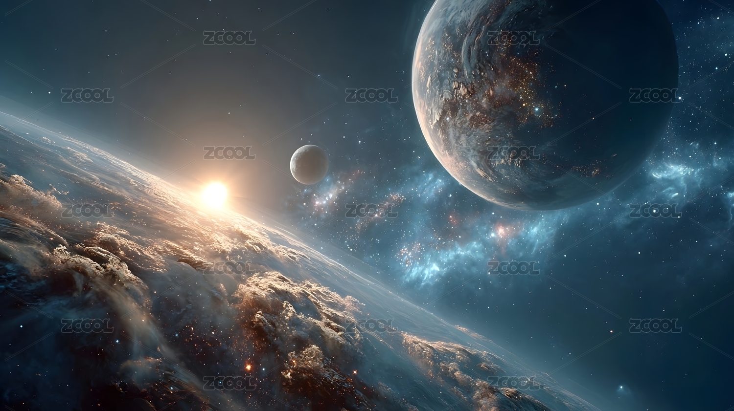 宇宙星空地球行星恒星展现浩瀚天体景观