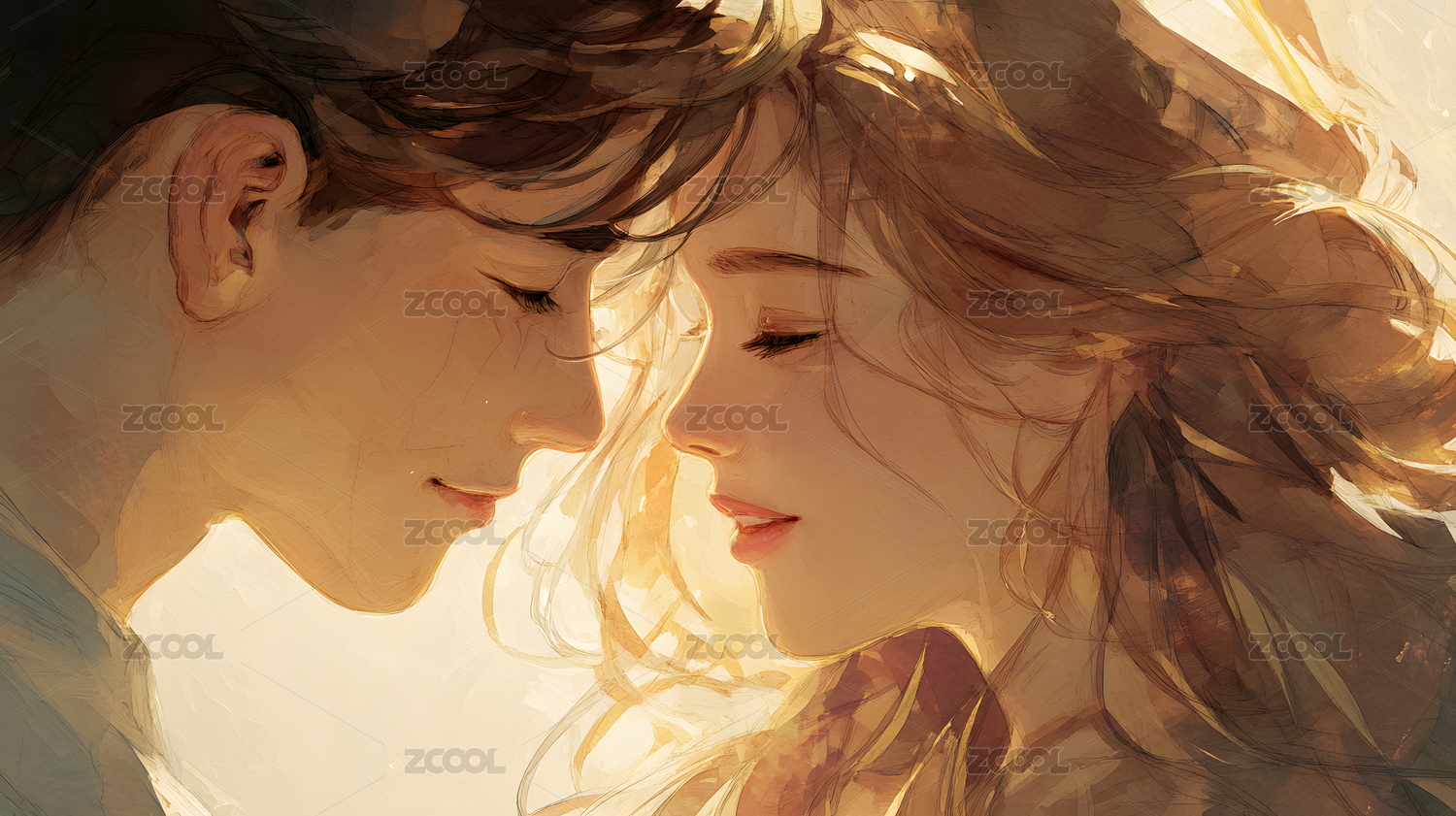梦幻,插画,恋人,唯美,温柔,爱情,浪漫,艺术,情侣,绘画